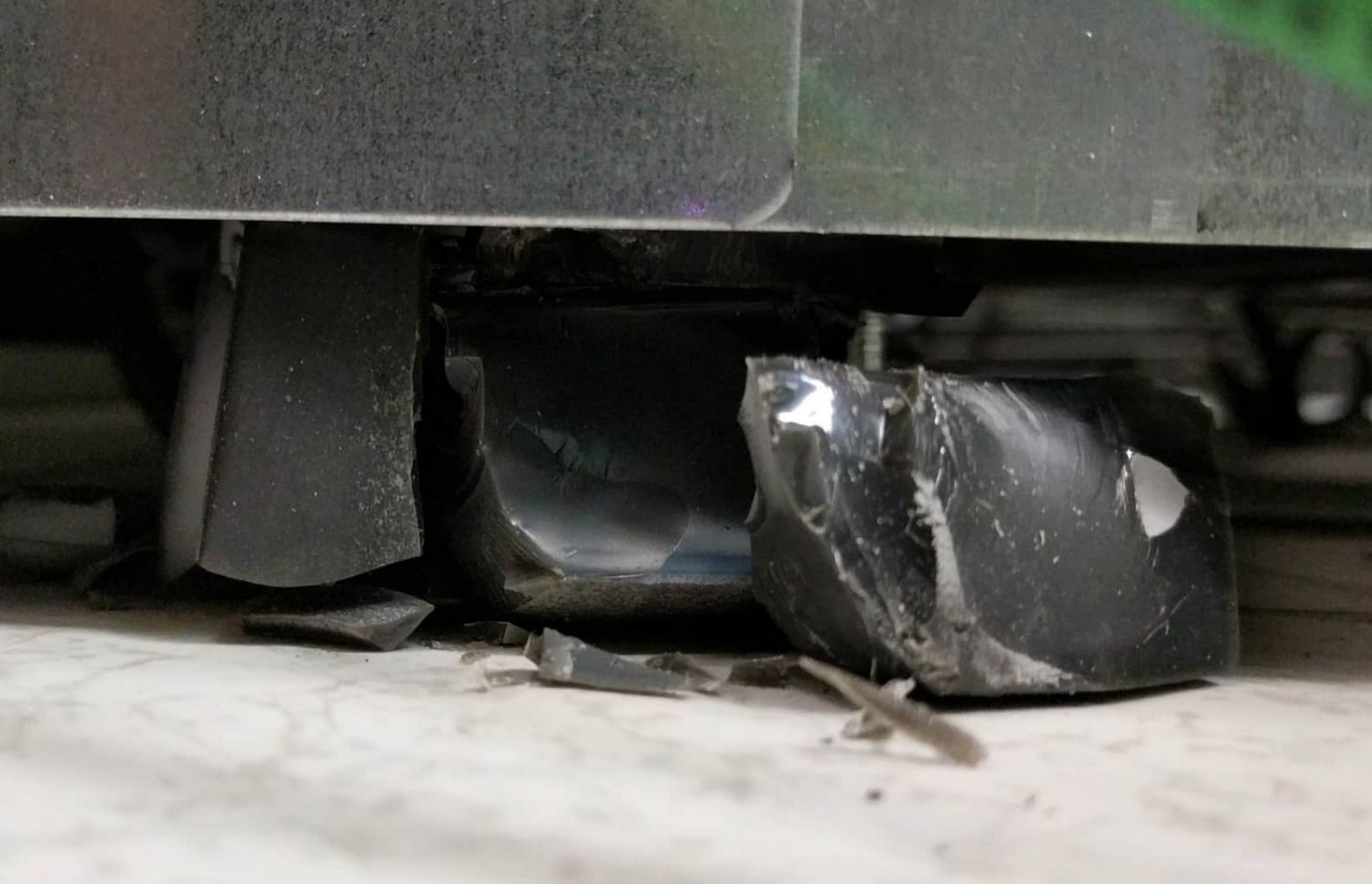 Nach längerem Suchen machte man dann den Fehler ausfindig, der so gar nichts mit den üblichen High Tech-Komponenten vom Speicher bis zum Prozessor zu tun hatte – wie ihr auf obigem Foto schon erkennen könnt. Eine Radrolle eines Serverschranks ist unter der Last der Komponenten zusammengebrochen und hat dafür gesorgt, dass der gesamte Serverschrank in Schieflage gerät und die Kühlung nicht mehr effektiv arbeiten kann.