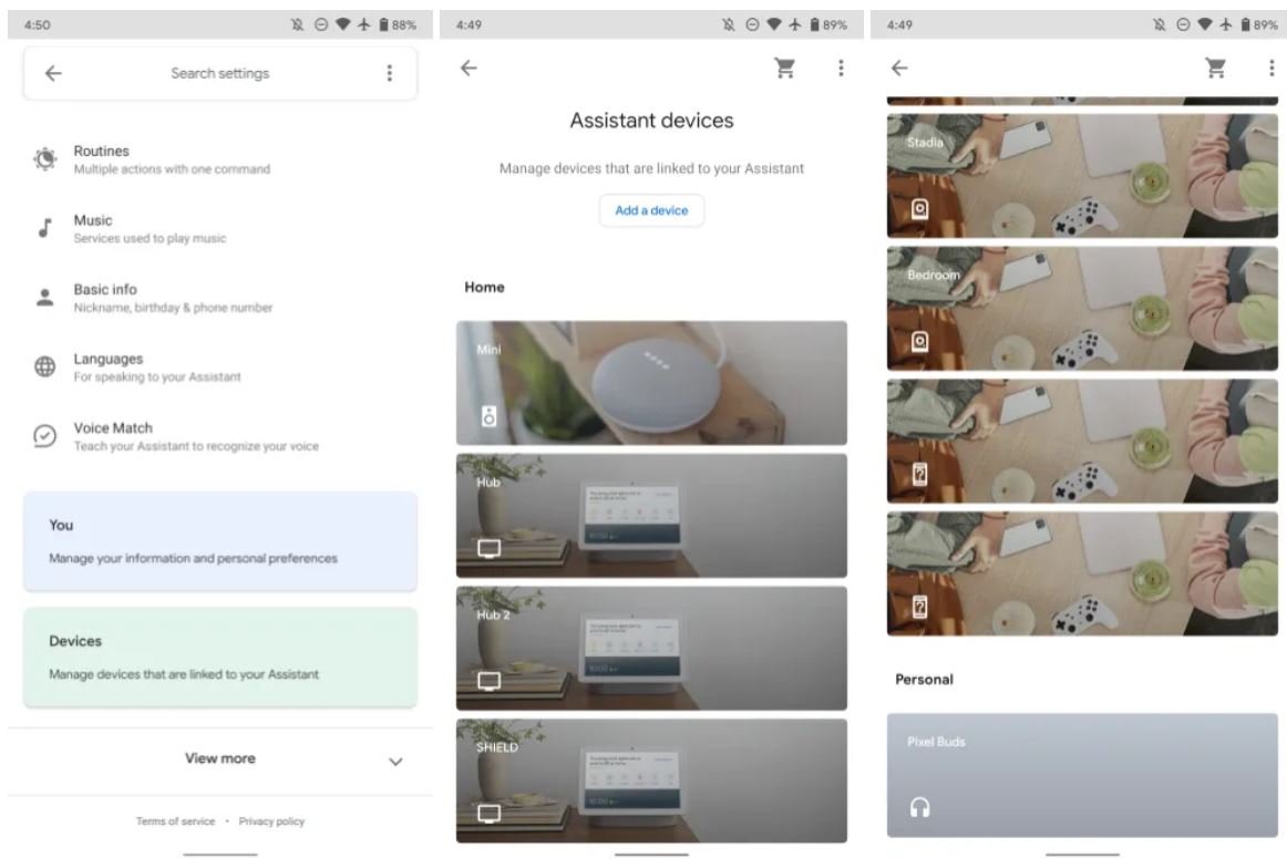 Auch diese Geräte sind, wie ihr auf den Screenshots erkennen könnt, erneut in Kategorien unterteilt. Derzeit gibt es „Home“, was die Geräte für die gesamte Familie enthält, sowie „Personal“. Im persönlichen Bereich finden sich aktuell nur die Kopfhörer, aber mit Sicherheit gehören dort auch die Smartphones und vielleicht auch Chromebooks hinein, aber soweit ist es aktuell noch nicht. Das zeigt, dass der Rollout in der finalen Version der Google-App wohl noch nicht zu erwarten ist.