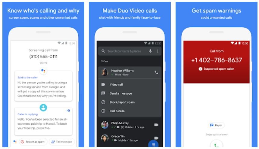 Mit einem einfachen Tippen kannst direkt von der Anrufliste, der Suche oder der Kontaktkarte aus Video-Einzelanrufe in höchster Qualität starten. Und wenn Google Duo installiert und aktiviert ist, kannst du Sprachanrufe ganz einfach als Videoanrufe fortsetzen. - SPAMSCHUTZ UND ANRUFER-ID