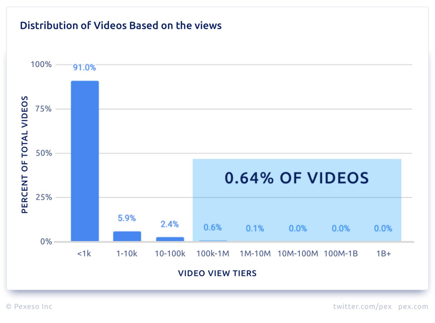 Eine interessante Studie von Pex.com hat sich mit den Zahlen von Googles Videoplattform beschäftigt und daraus sehr interessante Statistiken aufgestellt. Diese zeigen, dass eine gigantische Masse von Videos praktisch vollkommen irrelevant für die Plattform ist. 91 Prozent aller Videos erreichen nicht einmal 1000 Views. Das heißt nicht, dass sie qualitativ nicht gut oder nicht informativ sind, sie sind einfach nur für die Masse nicht relevant.