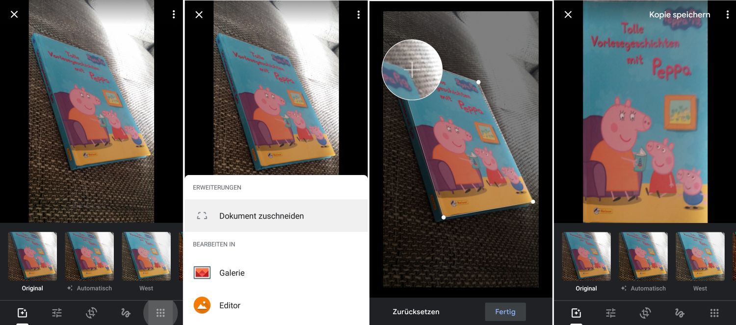 Das Tool ist tatsächlich recht gut versteckt, sodass es längst nicht allen Nutzern bekannt sein dürfte. Leider funktioniert es derzeit nur unter Android und ist im Browser auf dem Desktop nicht nutzbar – was sich aber vermutlich in Zukunft ändern wird. Zum Ausgleich von schräg fotografierten Dokumenten oder Fotos funktioniert das wirklich sehr gut und liefert natürlich die besten Ergebnisse, wenn das Ausgangsbild einfach nur optisch unschön, aber ansonsten gut erkennbar gewesen ist.