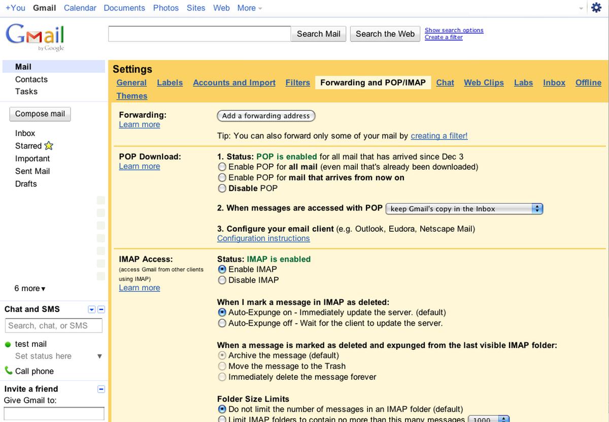GMail-Einstellungen im Jahr 2004