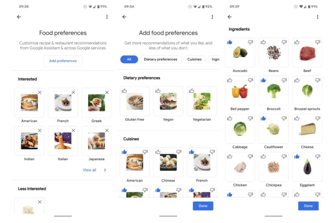 Der Google Assistant kommt sehr häufig in der Küche zum Einsatz und kann durch zahlreiche Anleitungen und Rezepte bei der Essenszubereitung helfen bzw. überhaupt erst Inspirationen für das heutige Festmahl geben. Natürlich konnte man das bisher schon filtern bzw. nach genauen Kategorien fragen, aber nun will der Google Assistant mal wieder etwas smarter werden und den Nutzer besser kennenlernen. Dafür gibt es in den Einstellungen den neuen Punkt der Essensvorlieben mit vielen bunten Bildchen.