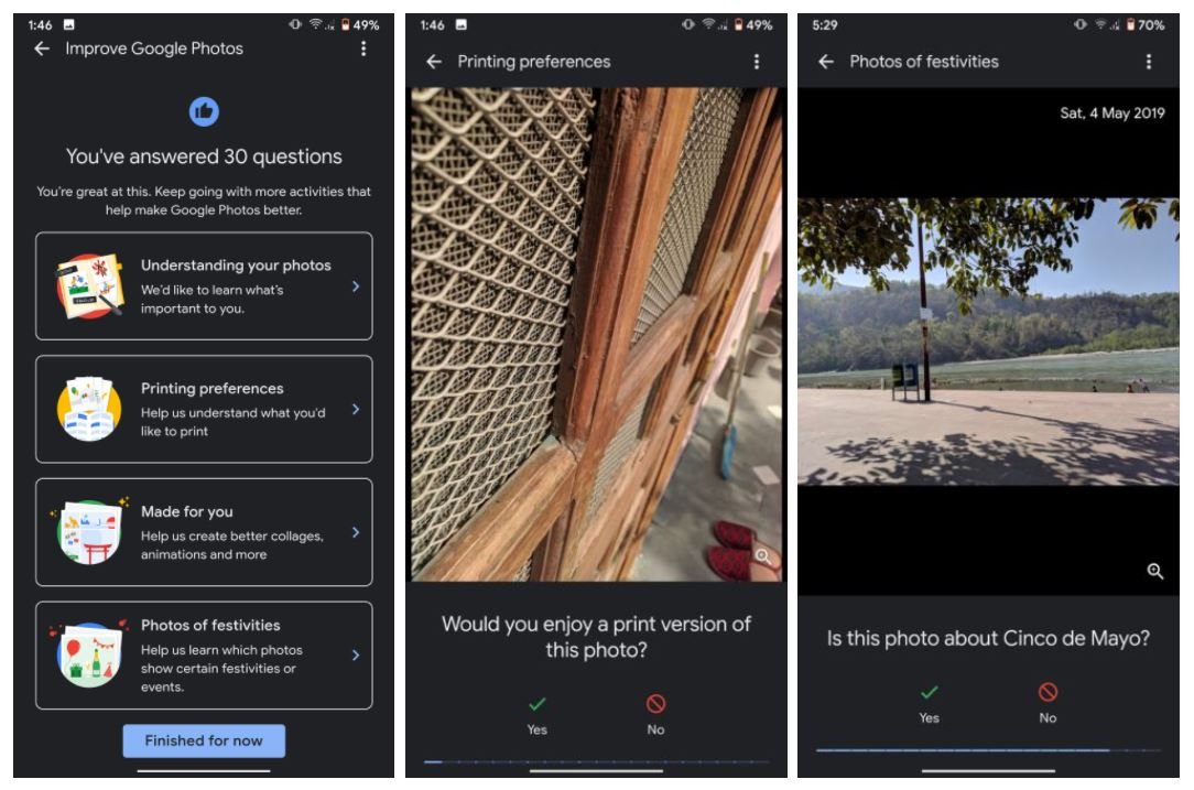 Ist das Tagging von Bildern abgeschlossen, öffnen sich drei weitere Feedback-Assistenten. In diesen könnt ihr auswählen, ob eines der vorgeschlagenen Fotos Druckenswert ist, also in das automatische Drucken-Abo eingeschlossen werden sollte, es lassen sich Collagen und Animationen bewerten und in der vierten Runde werden Bilder einzelnen Feiertagen zugeordnet und diese Zuordnung bewertet. Schaut euch dazu auch die starke Halloween-Suche an.