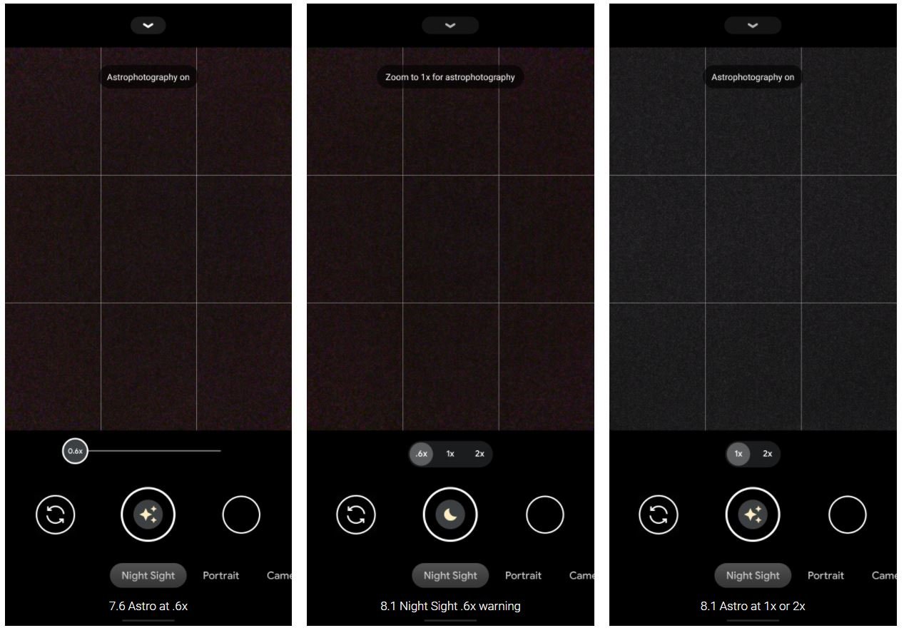 Die aktuellen Pixel-Smartphones Pixel 4a 5G sowie Pixel 5 bieten sowohl die Astrofotografie sowie Widelens-Möglichkeiten zur Breitbild-Aufnahme – und bisher ließ sich beides sogar miteinander kombinieren. Durch herauszoomen auf 1x, starten der Astrofotografie und dem anschließenden Wechsel auf Zoom 0,6 war es möglich, den Sternenhimmel noch breiter zu fotografieren, was gerade bei dieser Aufnahmemöglichkeit sicherlich beeindruckende Bilder fabrizieren konnte.