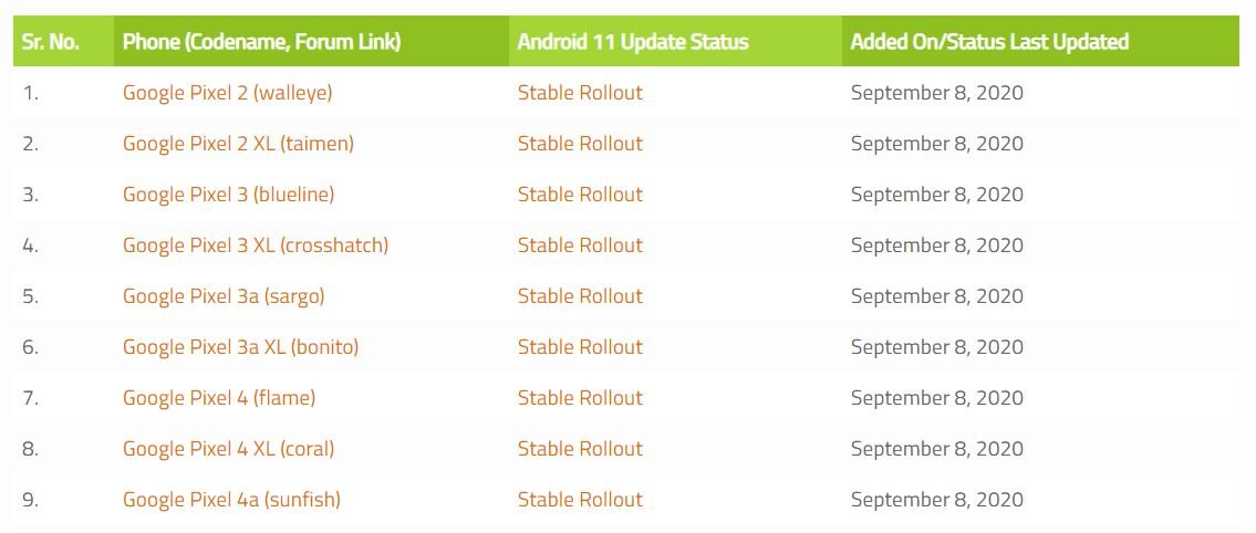 XDA Developers hat sich nun die Mühe gemacht und eine Liste aller Smartphones aufgestellt, die das Update nach aktuell bekannten Informationen erhalten haben. Der Android 11 Update Tracker zeigt, welches Smartphones aktualisiert wurde und liefert dazu noch einen Status (Beta oder Final) sowie das Datum des ersten bekannten Rollouts und weitere Informationen.