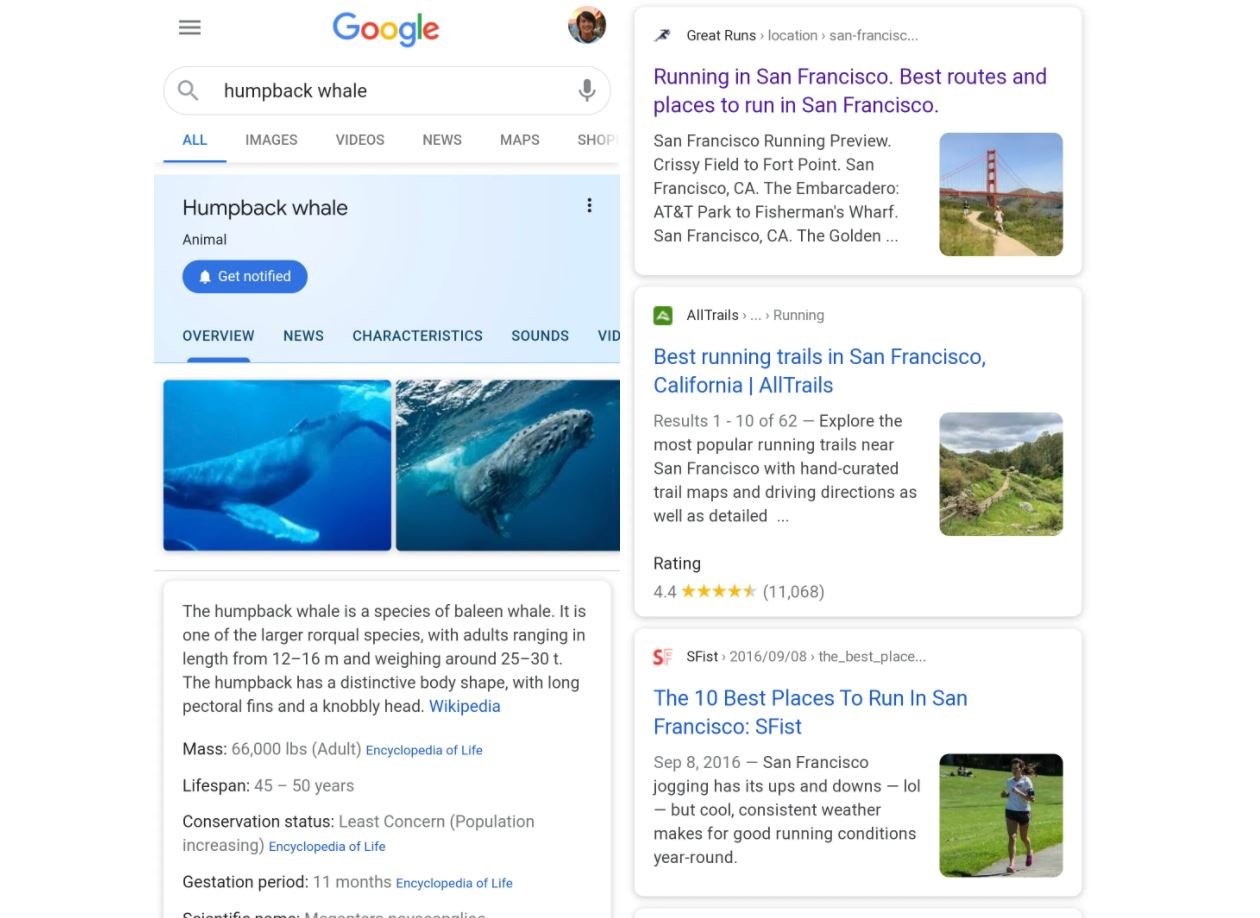 Oben seht ihr das alte bzw. für einige Nutzer noch-aktuelle Design zum Vergleich. Es zeigt sich, dass nicht nur die einzelnen Elemente angepasst wurden, sondern auch die Gesamtdarstellung: Die Schriftgröße wurde an einigen Stellen vergrößert, es wird vermehrt die Google-eigene Schriftart Google Sans verwendet und gleichzeitig wurden größere Abstände geschaffen. Durch die größeren Abstände konnte durch die eine oder andere Schattierung verzichtet werden, die die einzelnen Suchergebnisse und Inhalte bisher voneinander abgetrennt haben.
