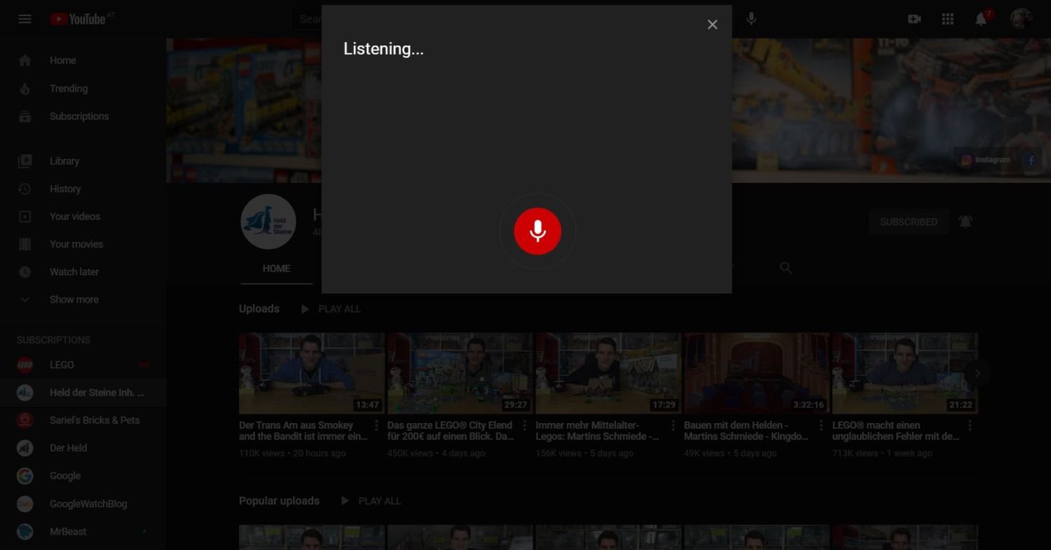 Nun erhält auch YouTube eine Sprachsuche inklusive Sprachsteuerung. Habt ihr diese erhalten, seht ihr ein Mikrofon neben der Suchleiste, das nach Vergabe der notwendigen Berechtigungen mit einem Klick die Sprachaufnahme steuert. Ihr könnt darüber nach Videos suchen, bestimmte Kanäle aufrufen, aber auch Bereiche wie die eigene Bibliothek, die Watchlist und andere Dinge aufrufen. Eine Steuerung des laufenden Videos ist derzeit noch nicht möglich. Dieses wird beim Start der Spracheingabe automatisch pausiert.