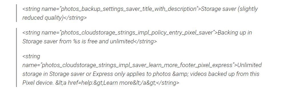 Man hat wohl das seit langer Zeit in einigen Ländern verfügbare Express-Backup ausgebaut und will dieses unter der Bezeichnung „Storage Saver“ auf alle Pixel-Smartphones bringen. Auf den folgenden Screenshots könnt ihr einige Strings innerhalb der App-Version 5.41 sehen, die das belegen.