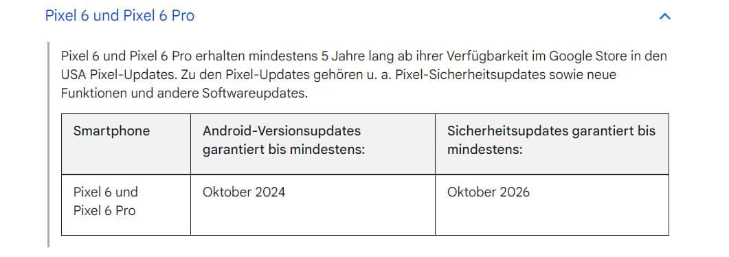 Das Pixel 6 gefällt mir ziemlich gut, aber nur 3 Jahre Hauptupdates ist einfach nur schwach!.
