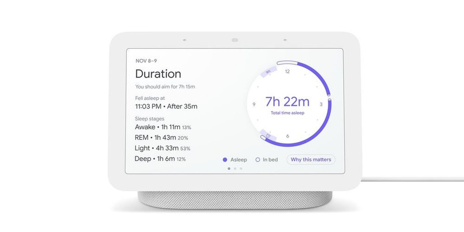 Schlaf ist nicht gleich Schlaf, denn bekanntlich durchläuft jeder Mensch ab einer gewissen Zeitdauer die verschiedensten Phasen des Schlafs – wobei vor allem der Tiefschlaf bekannt sein dürfte. Auch diese einzelnen Phasen will das Nest Hub Smart Display ausführlich erkennen und kann diese mit einer neuen Statistik separat ausweisen. In Kombination mit möglichen störenden Geräuschen soll man so sehr genau herausfinden können, was den Schlaf gestört haben könnte bzw. was passiert ist, während man schlief.