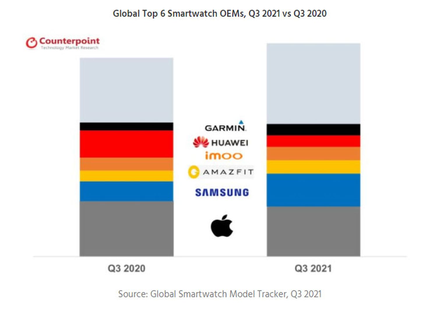 Wie die Marktforscher von Counterpoint Research nun zu berichten haben, haben sowohl Google als auch Samsung massiv vom Neustart spendiert, der einzig und allein von der Samsung Galaxy Watch 4 in zwei verschiedenen Versionen gestemmt wurde. Glaubt man den Aussagen, dann hat Samsung im 3. Quartal so viele Smartwatches verkauft wie niemals zuvor. In Nordamerika soll der Anteil gar auf 60 Prozent aller Smartwatches gestiegen sein – und damit weit vor der Apple Watch.