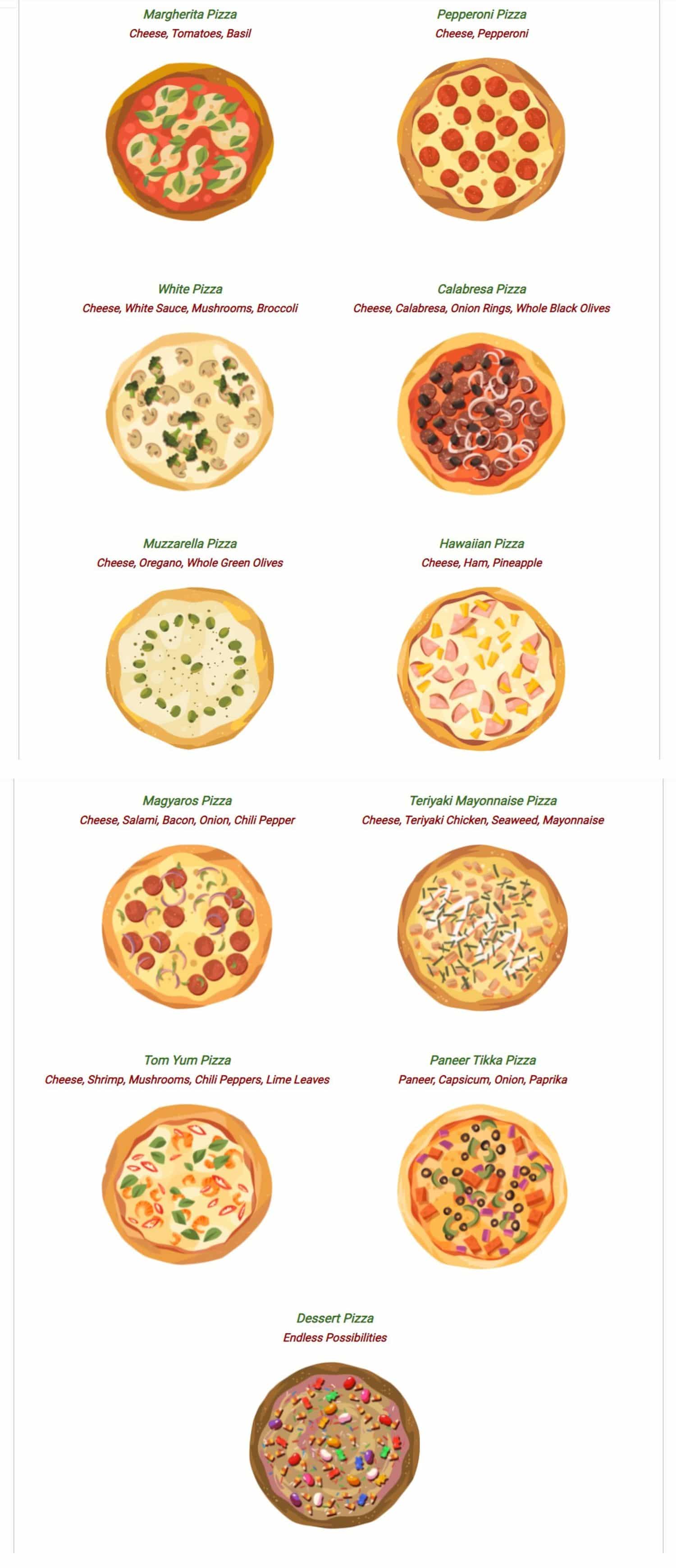 Und damit das Doodle auch einen Lerneffekt hat, hat Google die obige Auflistung der wichtigsten Pizzasorten veröffentlicht, die im Doodle vorkommen. Ihr seht den fertigen Rundteig und erhaltet eine kurze Auflistung der Zutaten. Die eine oder andere Sorte kennt jeder, aber die Doodle-Redakteure haben sich auch international umgesehen und einige Sorten kreiert, die zumindest ich persönlich hierzulande noch nicht gesehen, geschweige denn gegessen habe: Tom Yum und Paneer Tikka.
