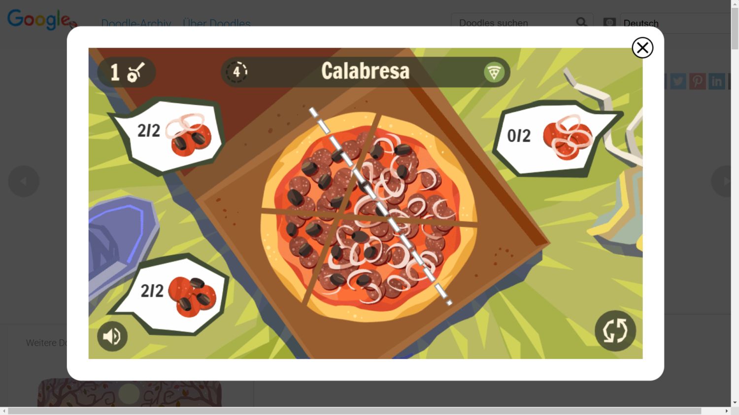 Das heutige Google-Doodle für Die Geschichte der Pizza könnte heute für viel Zulauf in den geöffneten Pizzerien führen. Die Nutzer werden in einem interaktiven Doodle an die bekanntesten Sorten herangeführt und bekommen diese nicht nur zu sehen, sondern müssen sie den Vorgaben der einzelnen Runde entsprechend schneiden. Mal ein ganz anderes Prinzip als immer nur das Pizza-belegen, denn das haben bereits die Grafiker übernommen.