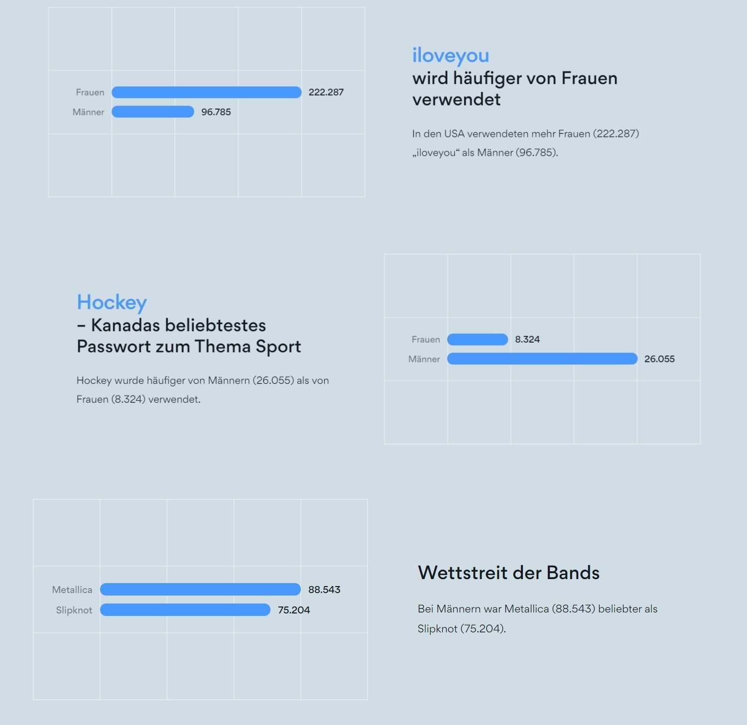 Viele weitere Informationen zu den Statistiken rund um Passwörter findet ihr im folgenden Artikel. Neben einer Top20 für Deutschland, Österreich und Schweiz findet ihr dort auch Informationen zur statistischen Dauer, bis ein Passwort geknackt ist.