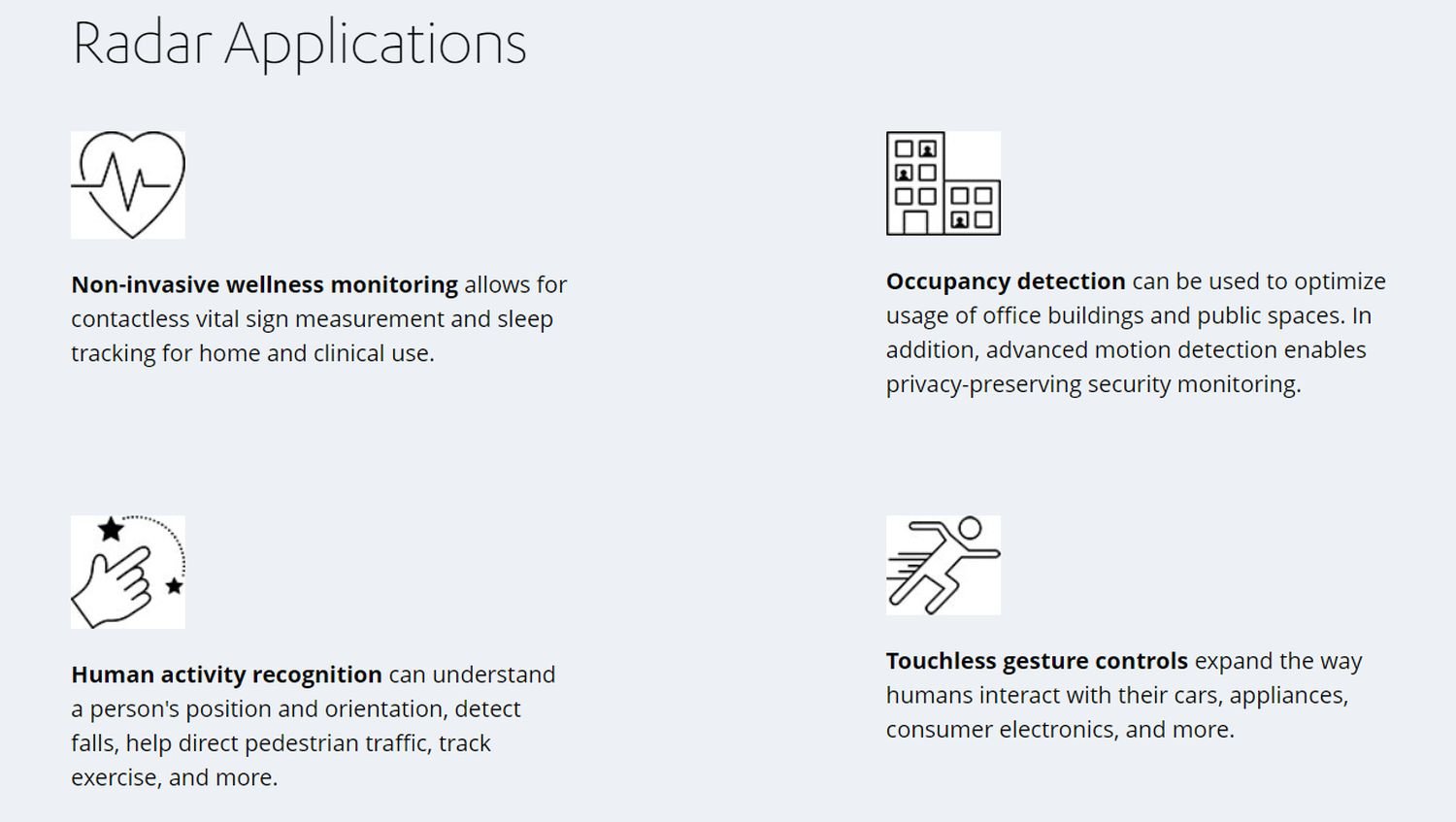 Man möchte einige Vitalwerte zukünftig ohne Berührungen oder Stiche erfassen und führt auch den Bereich des Schlaftracking an, das man selbst mit Google Nest Hub anbietet. Aber auch bei der Gebäude-Automatisierung oder der Erfassung von Bewegungen vieler Menschen soll es hilfreich sein. Die berührungslose Steuerung per Gesten hat man bereits selbst auf dem Smartphone gezeigt und als letztes Beispiel nennt man die Erkennung von Fußgängern. Letztes dürfte wohl auch der Grund sein, warum Ford als früher Partner mit an Bord ist.