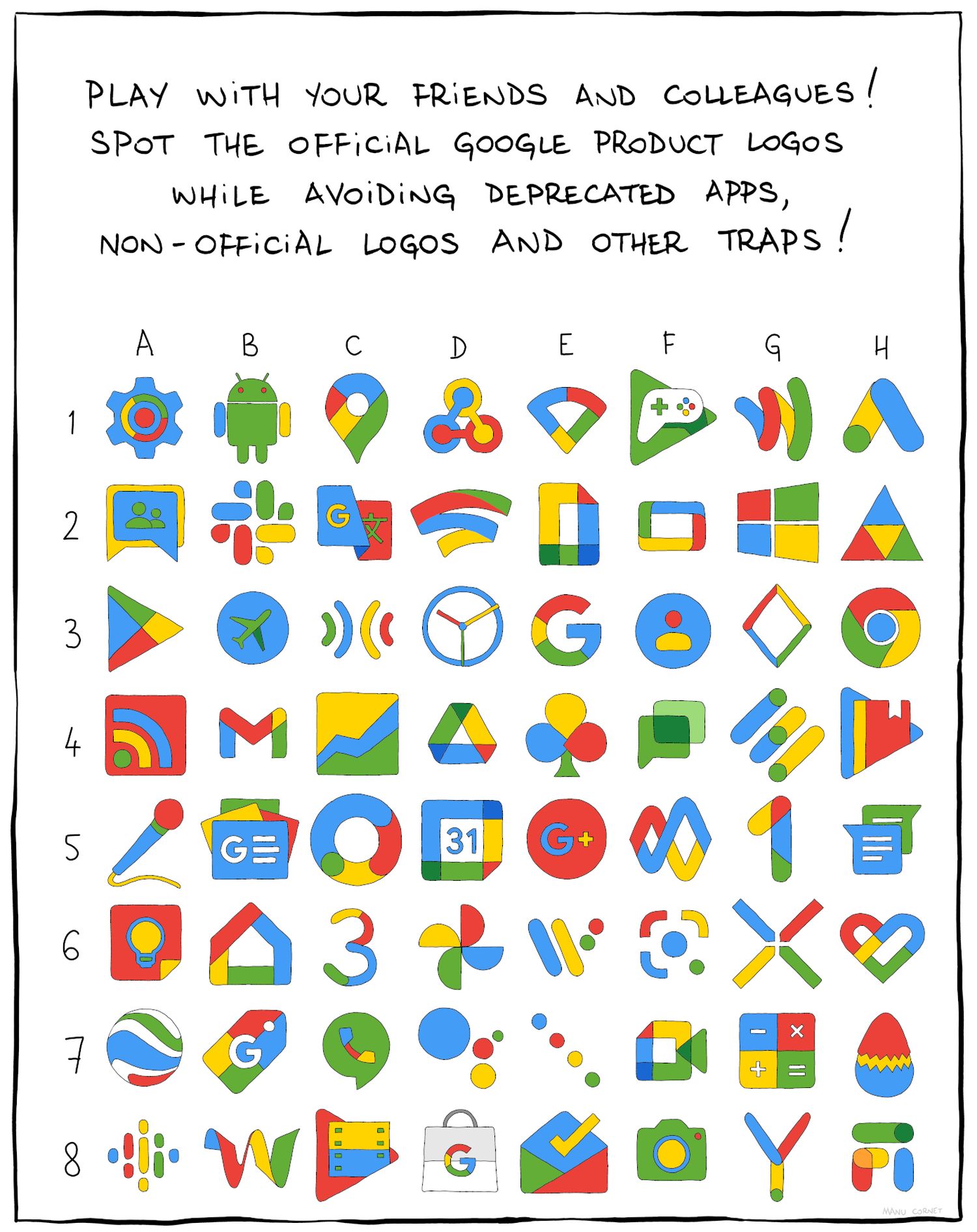 Googles Designer gönnen sich nur selten eine Pause und verpassen nicht nur den App-Oberflächen, sondern auch den Logos der Produkte immer wieder ein neues Äußeres. Besonders im vorvergangenen Jahr haben die Logowechsel für Kritik gesorgt, die auch dem Goomics-Zeichner nicht entgangen ist. Der ehemalige Googler hat aus den Logowechseln ein Suchspiel gemacht, das tatsächlich gar nicht so leicht ist und auch für Fans herausfordernd sein kann.