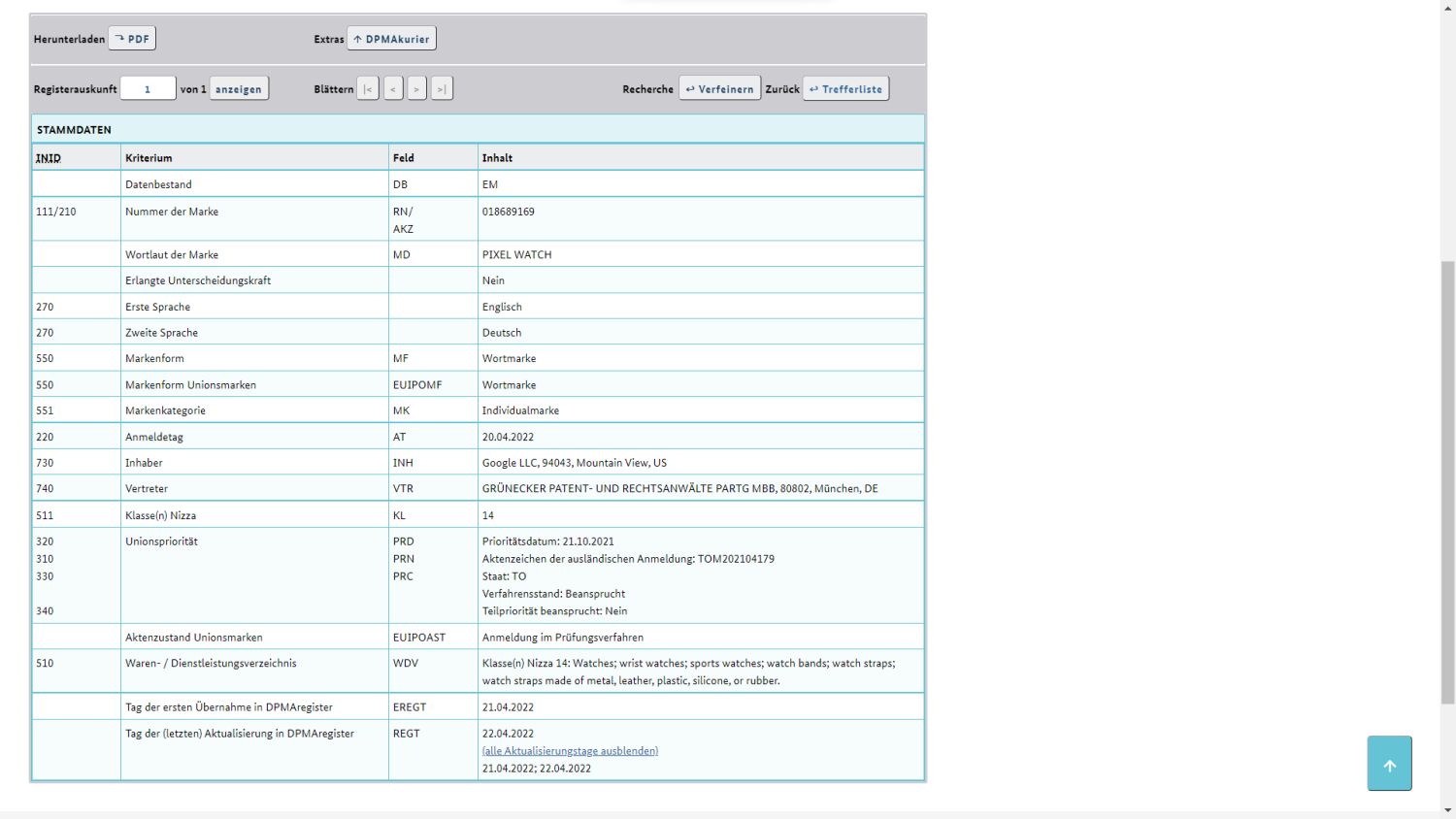 Die Marke „Pixel Watch“ wurde in mehreren Ländern gesichert. Sowohl in den USA als auch in Deutschland hat man die Marke am 21. April eingereicht und vermutlich wird es in weiteren Regionen mit geplanter Erscheinung ähnlich sein. Damit ist der Start der Smartwatch in Deutschland zwar nicht bestätigt, aber sehr wahrscheinlich. Es ist davon auszugehen, dass sie weltweit am selben Tag in den Verkauf gehen wird. Ob das nun Ende Mai, Ende Juni oder doch erst im Spätsommer im Gepäck des Pixel 7 soweit sein wird, lässt sich daraus nicht ablesen.