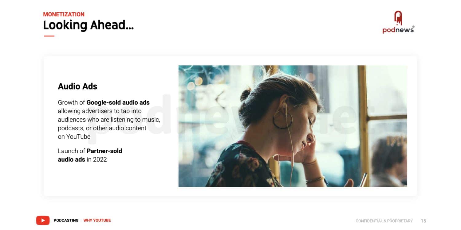 Schaut euch einfach einmal die folgenden Bilder der Präsentation an. Dort ist auch zu sehen, dass die Monetarisierung eine große Rolle spielt und man sich damit erstmals auch in diesem Bereich für Podcaster öffnet. Auch das wird sehr viel leichter sein, wenn die Podcasts nicht nur aus Audio, sondern auch Video bestehen.