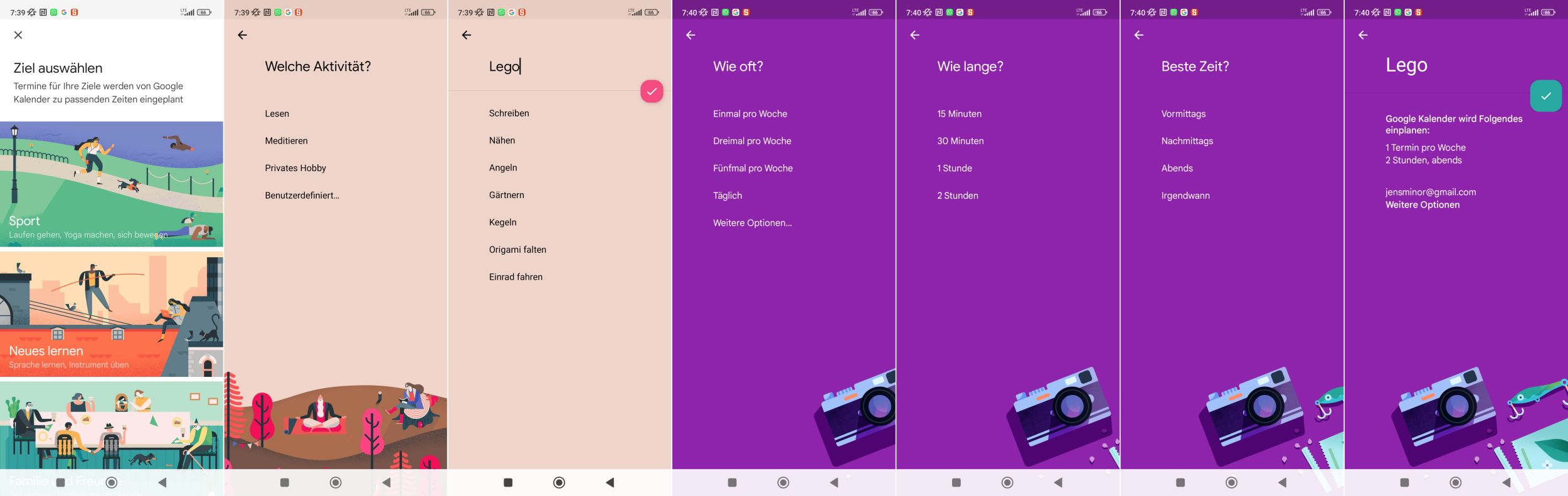 Die Ziele gab es in den Kategorien „Sport“, „Neues lernen“, „Familie und Freunde“, „Zeit für mich“ sowie „Mein Leben organisieren“. Echte Unterschiede in der Kategorisierung sowie den weiteren festgelegten Details gab es allerdings nicht. Google hat es auch niemals geschafft, diese Funktion in den Browser zu bringen und bot es nur unter Android an.