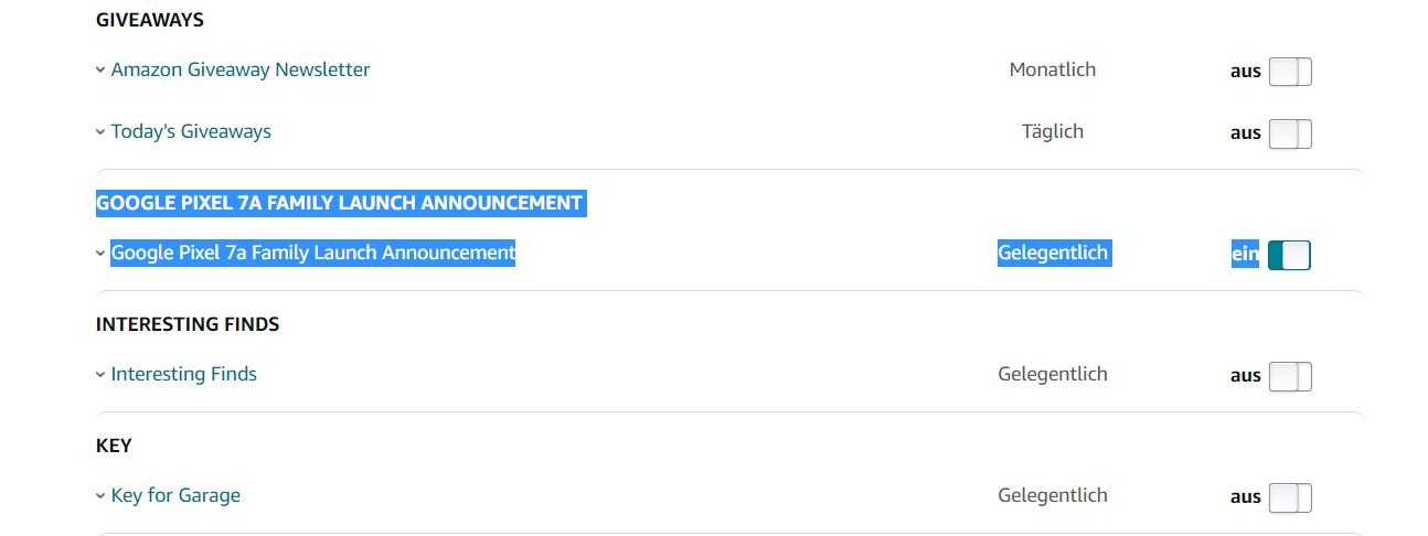 Doch bei Amazon USA war (und ist!) in den letzten Tagen ein interessanter Eintrag zu sehen. Auf der Mailing List-Seite haben alle Nutzer die Möglichkeit, sich für bestimmte Events zu registrieren und von Amazon per E-Mail informiert zu werden. Und auf dieser Liste findet sich seit einigen Tagen der Eintrag „GOOGLE PIXEL 7A FAMILY LAUNCH ANNOUNCEMENT“. Trotz Medienberichten über das Wochenende ist dieser Eintrag nicht verschwunden und man kann sich weiterhin registrieren, um informiert zu werden.