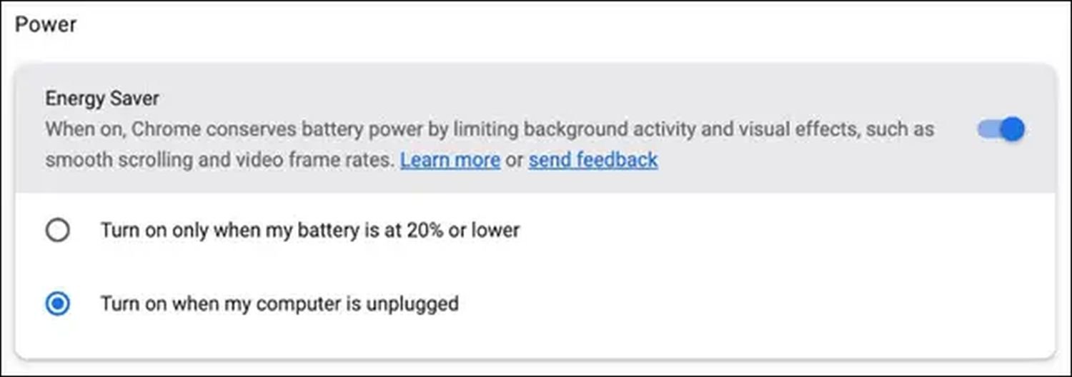 Energiesparmodi sind auf Laptops sehr wichtig und ein fester Bestandteil des Betriebssystems. Weil der Browser zu den Apps gehört, die am meisten Energie ziehen und noch dazu die längste Nutzungsdauer aufweisen, gibt es jetzt auch im Chrome-Browser einen solchen Modus. Dieser lässt sich aktuell nach zwei Kriterien automatisch einschalten: Entweder immer dann, wenn das Gerät auf Akkubetrieb läuft oder wenn dieser unter 20 Prozent fällt.
