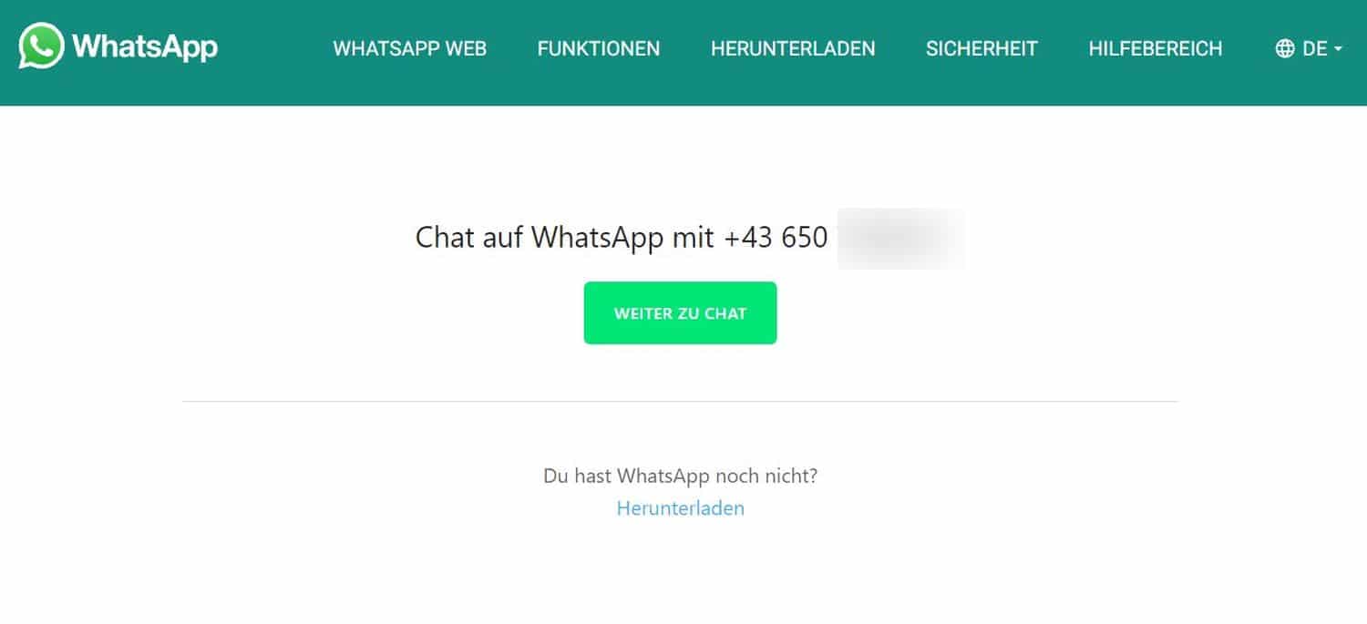 Um den WhatsApp-Chat mit euch selbst einzurichten, müsst ihr einfach nur einen Link aufrufen und diesem folgen. Das funktioniert sowohl am Desktop (im Browser) als auch auf dem Smartphone. Gebt einfach den Link wa.me// gefolgt von eurer Telefonnummer im internationalen Format mit Ländervorwahl ein. Also beispielsweise wa.me//0049172123456789. Nun gelangt ihr auf eine WhatsApp-Seite, die euch dazu auffordert, die WhatsApp-App zu öffnen. Das müsst ihr einfach tun.