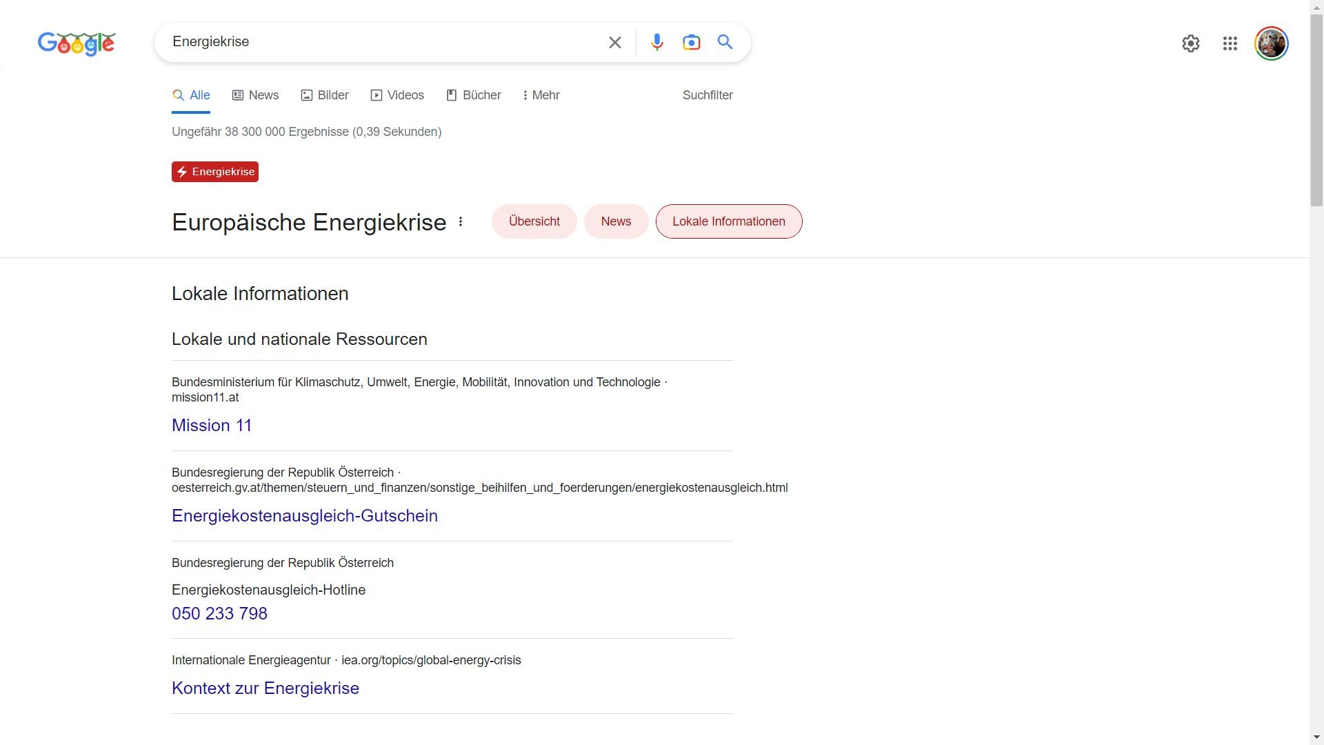 Ob aus Eigeninitiative oder in Zusammenarbeit mit der Europäischen Union, bewirbt Google nun „Energiespartipps für den Alltag“ auf der Startseite und verlinkt auf die Suchanfrage zur Energiekrise. Dort findet ihr viele Informationen, sowohl nationale als auch lokale Informationen sowie natürlich eine Reihe von Energiespartipps und aktuelle Schlagzeilen. Ob das nützlich ist oder nicht, muss jeder für sich selbst entscheiden, aber schaut doch mal herein.