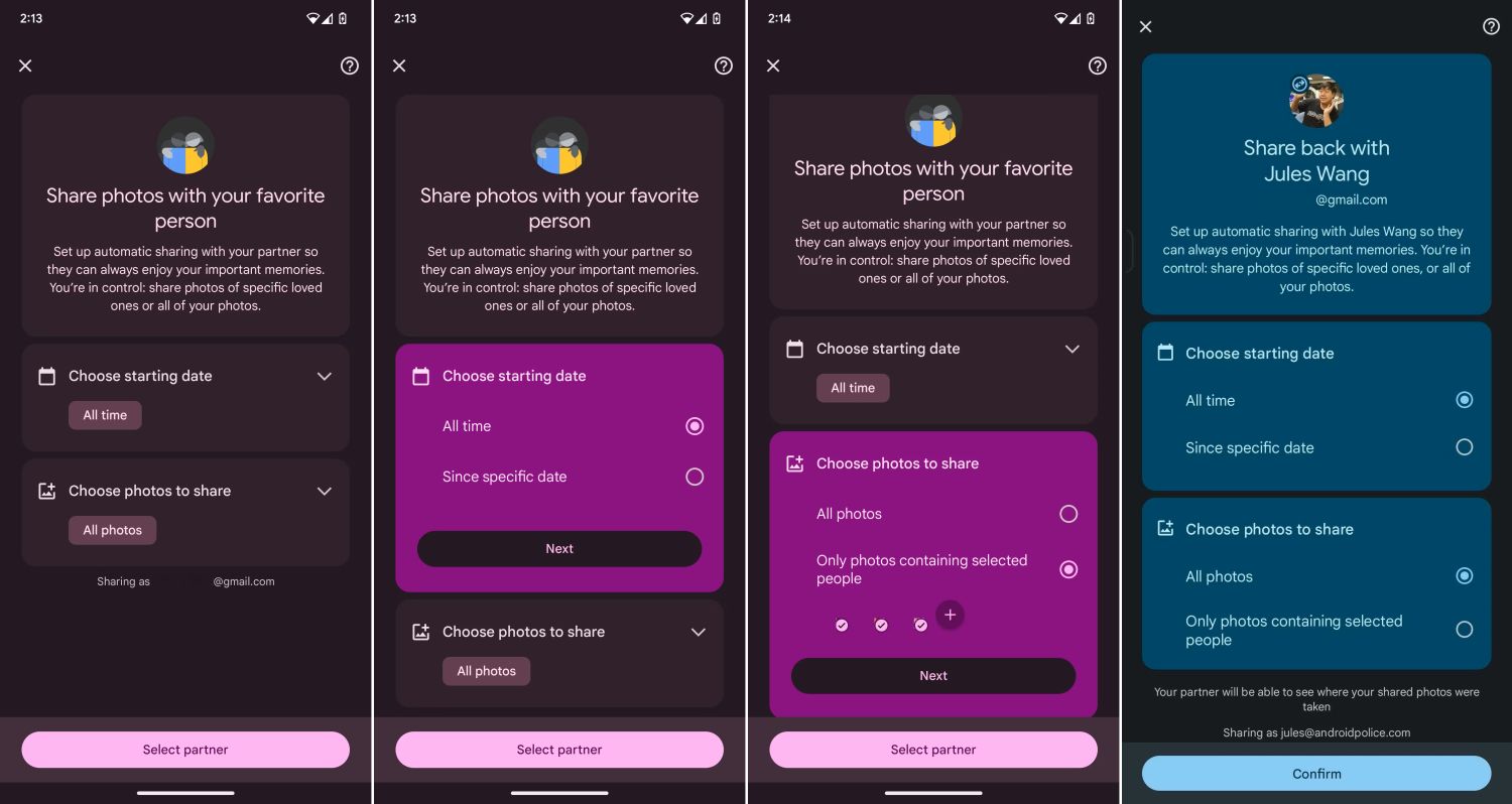 Jetzt wird der Assistent zur Einrichtung dieser Funktion ganz neu aufgestellt. Dieser erhält eine Material You-Oberfläche mit klaren Abgrenzungen zwischen den einzelnen Bereichen und dreht den Einrichtungsprozess um – was der Hauptteil des kleinen Neustarts ist. Denn statt zuerst die Person auszuwählen und dann die Filter anzulegen, funktioniert es jetzt umgekehrt. Zuerst wird der Datumsbereich ausgewählt, dann die Personen oder in beiden Fällen einfach die Filter übersprungen.