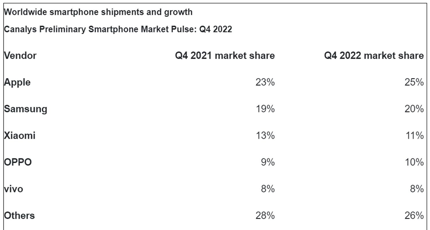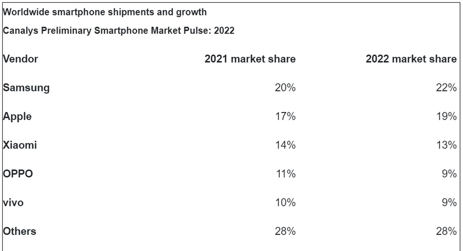 Smartphone-Marktanteile: Apple schafft Rekordquartal, Samsung holt auf, Xiaomi & Co verlieren weiter (2022)