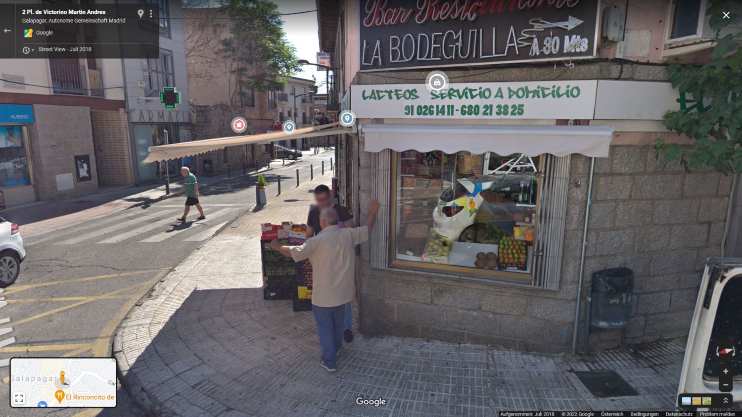 Dass aber ausgerechnet das Streetview-Fahrzeug den letzten Hinweis liefert, hätte wohl auch der Koch nicht gedacht. Fun Fact: Im Schaufenster des Gemüseladens spiegelt sich sogar das Google-Fahrzeug. Noch einfacher wäre es übrigens gewesen, wenn Google Maps Streetview der Polizei das unverpixelte Bild zur Verfügung gestellt hätte. Das kann man aber in den meisten Fällen wegen Datenschutz und Persönlichkeitsschutz nicht tun. In Deutschland heißt es übrigens, dass die Originale gar nicht vorhanden sind. Was stimmt nun?