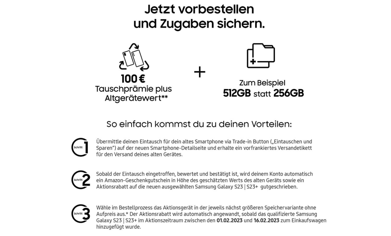 Samsung Galaxy S23 Aktion: Jetzt vorbestellen und ein kostenloses Speicher-Upgrade erhalten – alle Infos