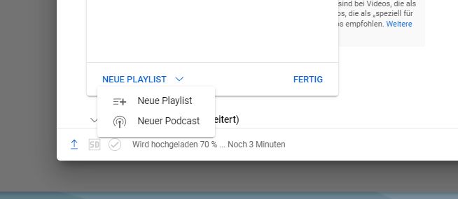 Wie sich Google Podcast-Pläne mit YouTube Podcasts und YouTube Music Podcasts zusammenfügen, muss sich erst noch zeigen, doch schon jetzt ist klar, dass die bisherigen US-only Pläne auch eines Tages international starten sollen. In den Video-Einstellungen sowie während des Uploads gibt es jetzt die Option, ein Video nicht nur einer Playlist zuzuweisen, sondern auch einem Podcast. Über diesen Eintrag lassen sich auch Podcast-Playlisten erstellen.