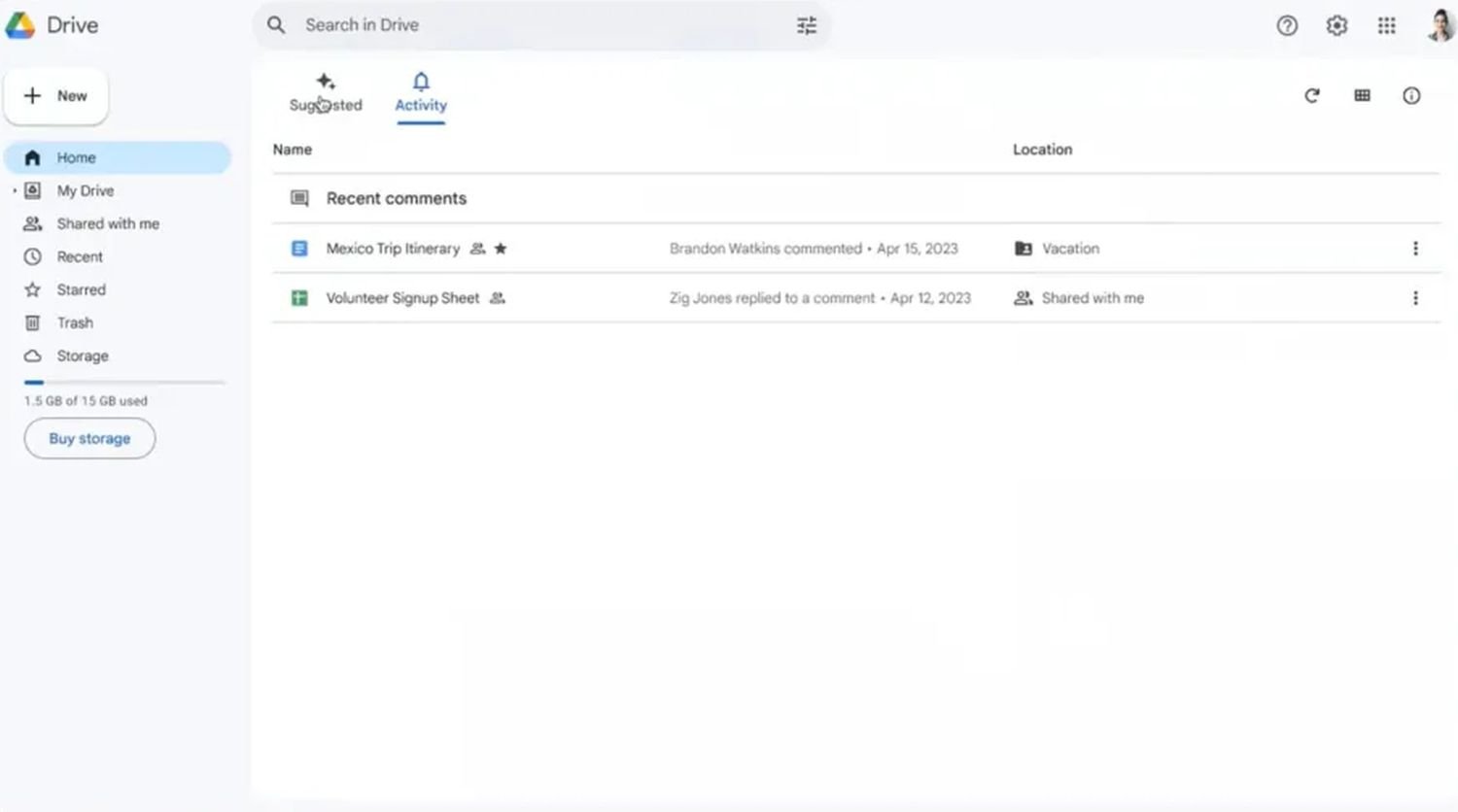 As part of our continued user experience updates, we’re testing a new homepage in Drive with a group of users. The new homepage will surface your most relevant files and folders — helping you find what you need faster. If you see this new experience, drop your feedback below! pic.twitter.com/4KPevBQTpa