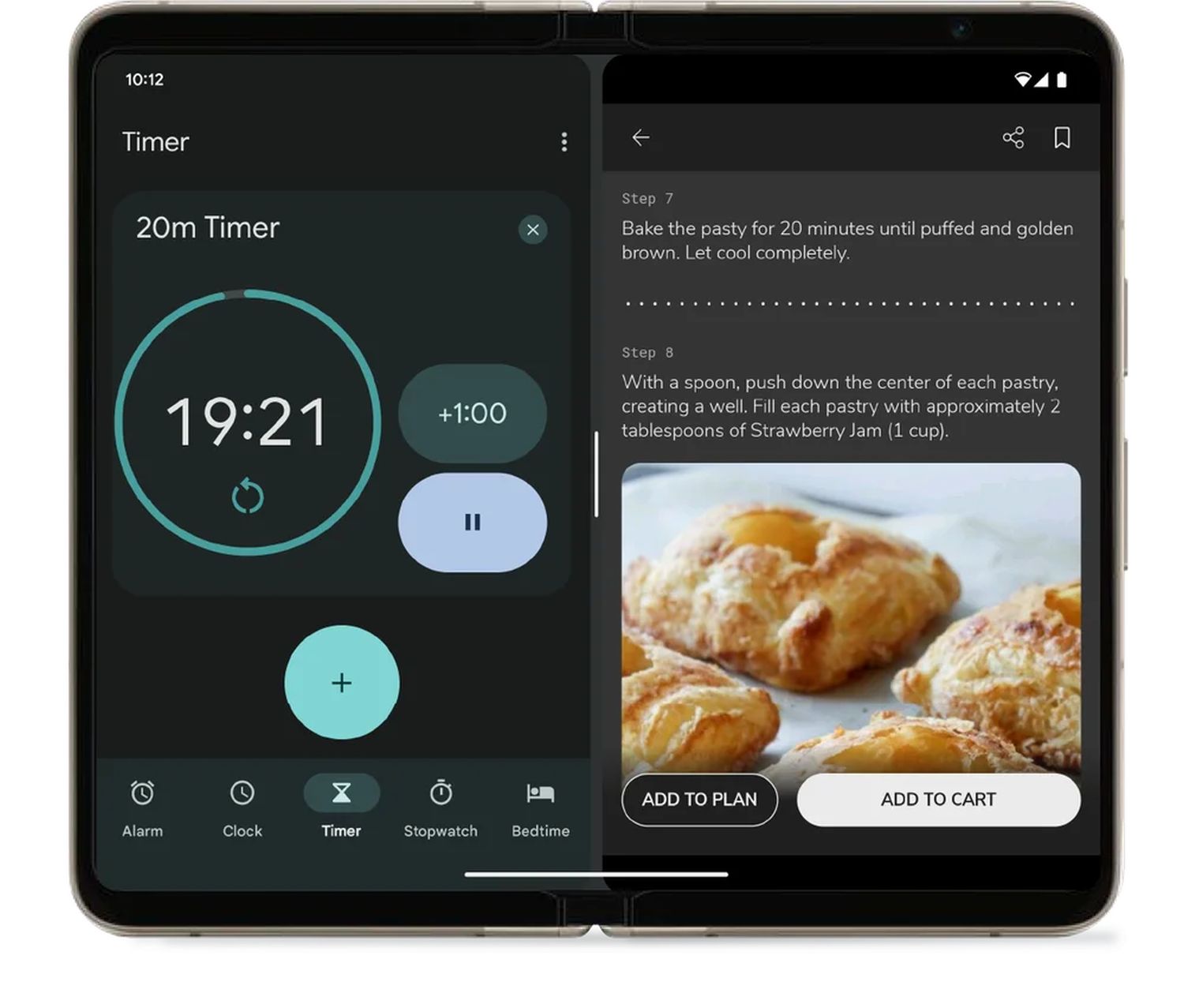 SideChef , eine Koch- und Lebensmittel-App mit über 20.000 Rezepten, nutzt den größeren Bildschirm eines faltbaren Telefons, um Ihnen Schritt-für-Schritt-Anleitungen für Rezepte zu zeigen. Wenn Sie kochen, müssen Sie häufig Multitasking betreiben. Daher passt sich SideChef automatisch an, wenn Sie die App im Split-Screen-Modus verwenden: Auf der rechten Seite des Bildschirms können Sie das Rezept sehen und auf der linken Seite können Sie darauf zugreifen Stellen Sie einen Timer ein, um die verbleibende Garzeit eines Gerichts im Ofen zu verfolgen. Oder Sie können einen Taschenrechner aufrufen, um Messungen umzurechnen. Dieser Split-Screen-Modus hilft Ihnen, im Fluss zu bleiben und den nächsten Schritt im Rezept nie aus den Augen zu verlieren.