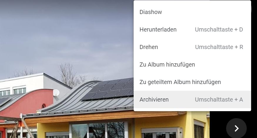 Im den Optionen jedes Fotos gibt es im erweiterten Kontextmenü den Punkt „Archivieren“. Dieser steht aber nicht als ständig sichtbares Icon zur Verfügung, sondern erst ganz unten im Menü. Alternativ ist er auch über die Tastenkombination SHIFT+A zu erreichen. Einfach drücken und schon wird das aktuell geöffnete Bild in das Archiv verschoben. Aber was ist das Archiv?