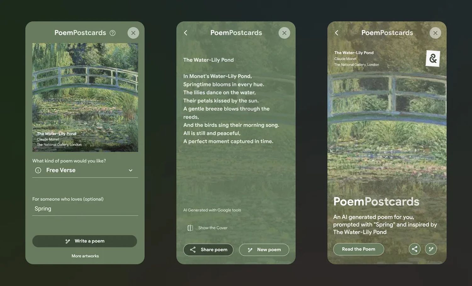 Google Arts & Culture: Neues Experiment lässt euch KI-generierte Postkarten mit Gedicht und Kunst erstellen