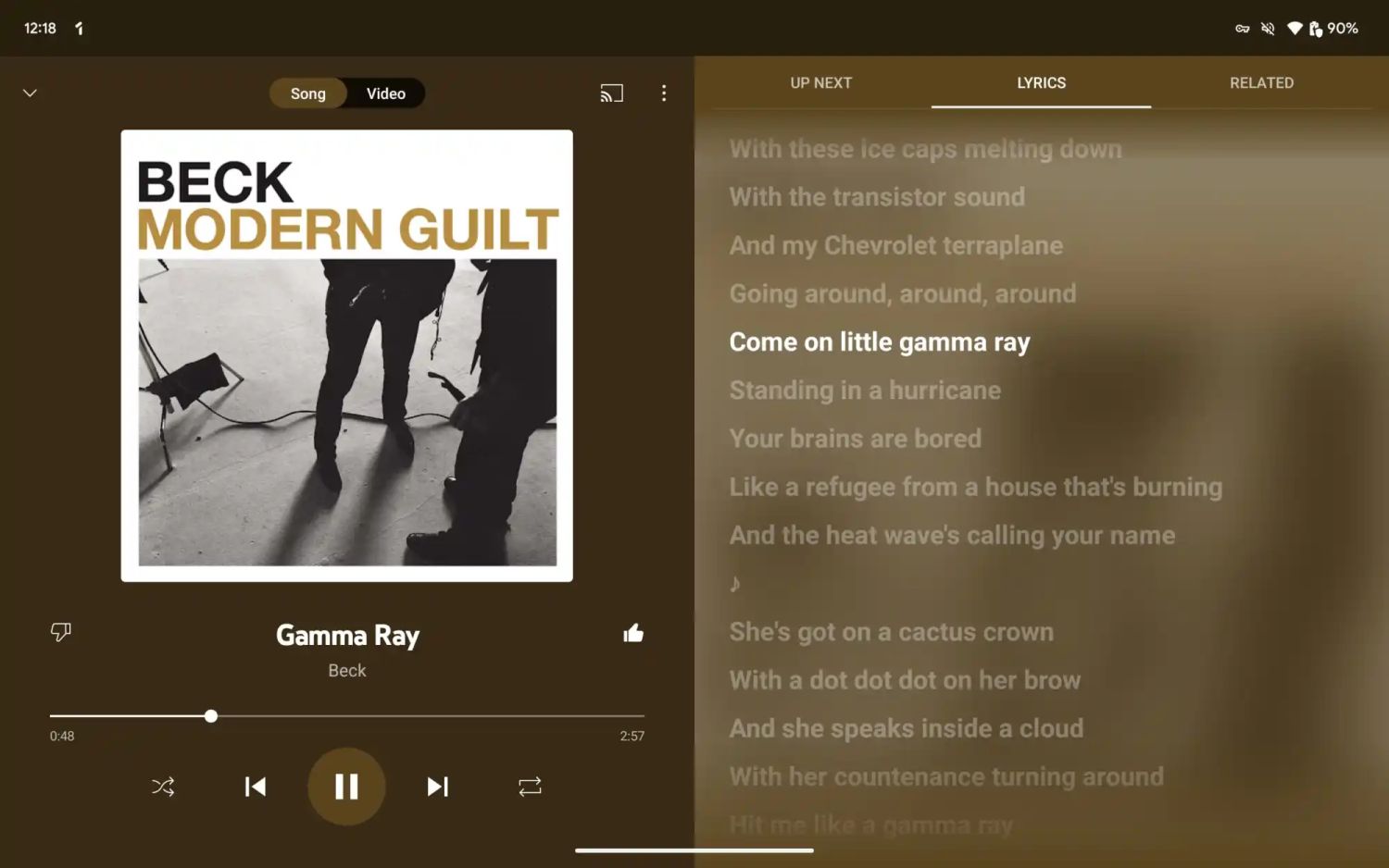 Neben dem Abspielen der Songtitel bietet YouTube Music je nach verwendeter Plattform eine Reihe von Oberflächen mit zusätzlichen Informationen: Cover, Musikvideo, die aktuelle Playliste, Details zum Titel sowie in vielen Fällen auch den Songtext. Letztes wird von Google aus externen Quellen bezogen und in simpler Textform dargestellt, so wie man es aus vielen anderen Apps oder Webseiten kennt.