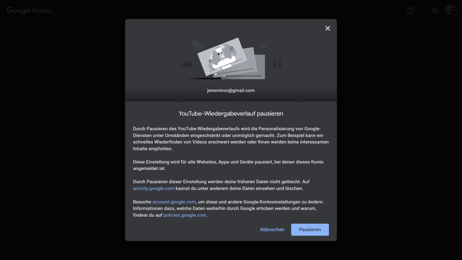 - Öffnet die Google Aktivitätseinstellungen