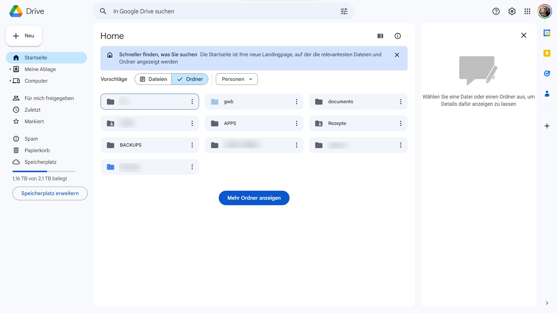 Bei vielen Nutzern dürfte der Cloudspeicher Google Drive gut gefüllt sein und aus einer umfassenden Sammlung von Dateien und Ordnern bestehen. Jetzt wird eine neue Startseite für alle Desktop- und PWA-Nutzer ausgerollt, die den Nutzern das Aufspüren der wichtigsten Dateien und Ordner erleichtern soll. Neben einer intelligenten Sortierung gibt es einen schnellen Zugriff auf die Filter.