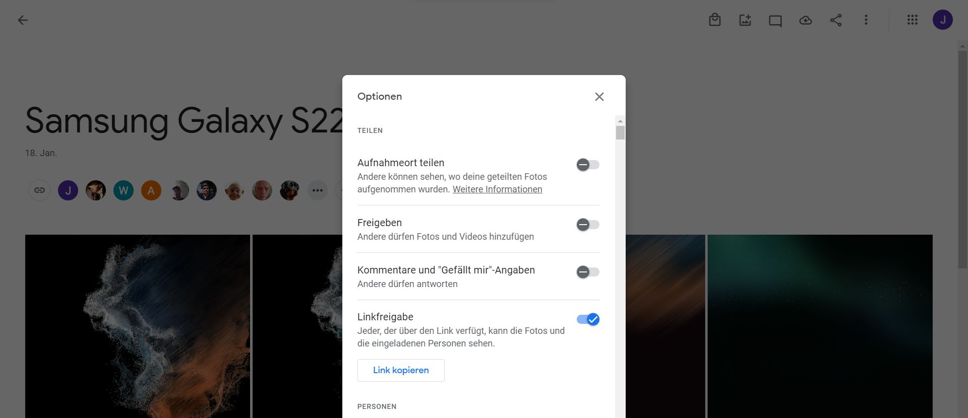 Ich durchlaufe die oben beschriebenen Prozesse. Ich lade die Bilder hoch, gebe das Album über die Teilen-Funktion für „alle mit dem Link“ frei und das war es. Dass man dabei aber nicht nur den Bildzugriff freigibt, sondern auch Schreibrechte verteilt, geht aus dem gesamten Dialog nicht hervor. Daher war mir das nie bewusst, obwohl ich Google Fotos sehr häufig und mit unterschiedlichsten Konten für viele Zwecke nutze.