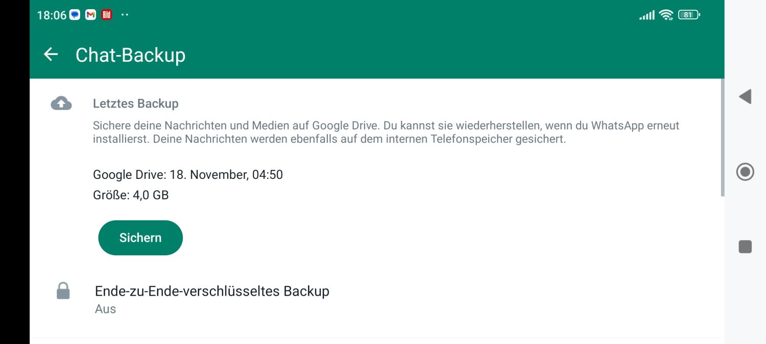 Wie dem auch sei, wer bisher Gigabyte-weise Backups bei Google Drive gespeichert hat, muss sich sehr bald Gedanken machen. Habt ihr etwa 3-4 Gigabyte WhatsApp-Daten und nur 15 GB Speicherplatz, dann ist das ein großer Einschnitt. Daher kann es nicht schaden, einmal in die Backup-Einstellungen hereinzuschauen und zu überprüfen, welche Möglichkeiten es dort gibt. Es ist kein Hexenwerk, aber den einen oder anderen Punkt sollte man beachten.