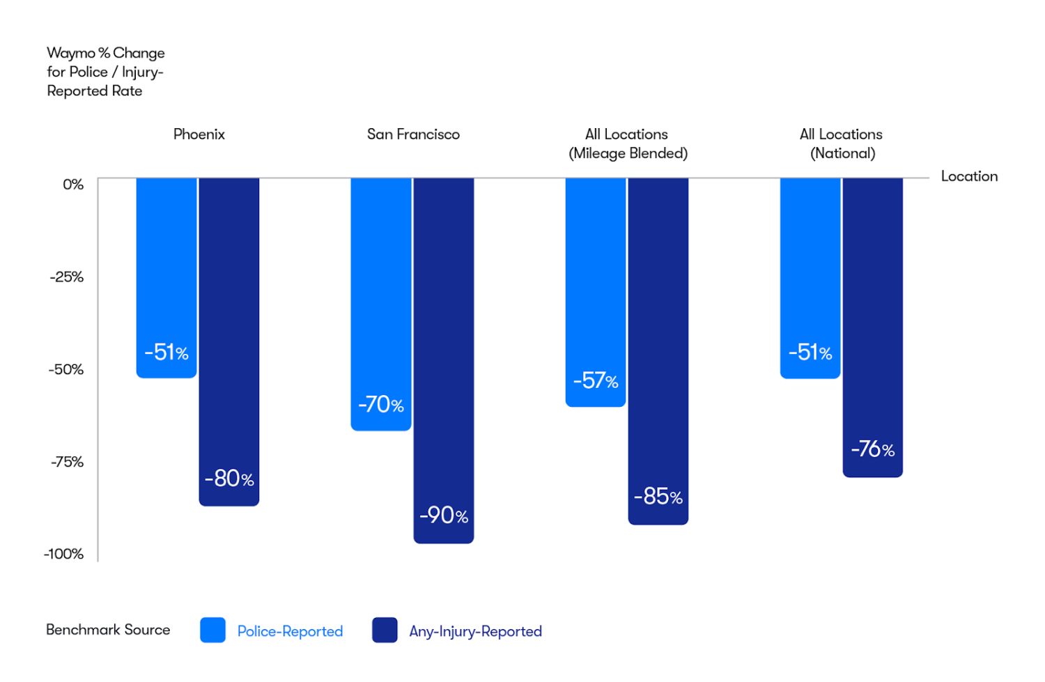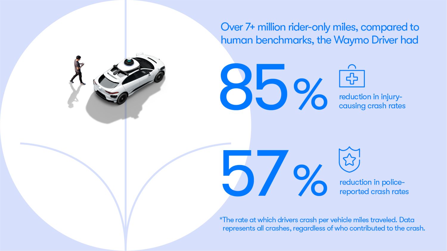 Glaubt man den Statistiken, dann haben die Waymo-Fahrzeuge 85 Prozent weniger Unfälle jeglicher Art als ein menschlicher Fahrer. Es gab 0,41 schwere bis tödliche Unfälle auf eine Million Meilen. Beim Menschen sind es 2,78 Unfälle. In puncto weiterer Zwischenfälle, die der Polizei gemeldet wurden, liegt man auch noch 57 Prozent niedriger als der Mensch. 2,1 Vorfälle pro einer Million Meilen bei Waymo und 4,85 beim Menschen.