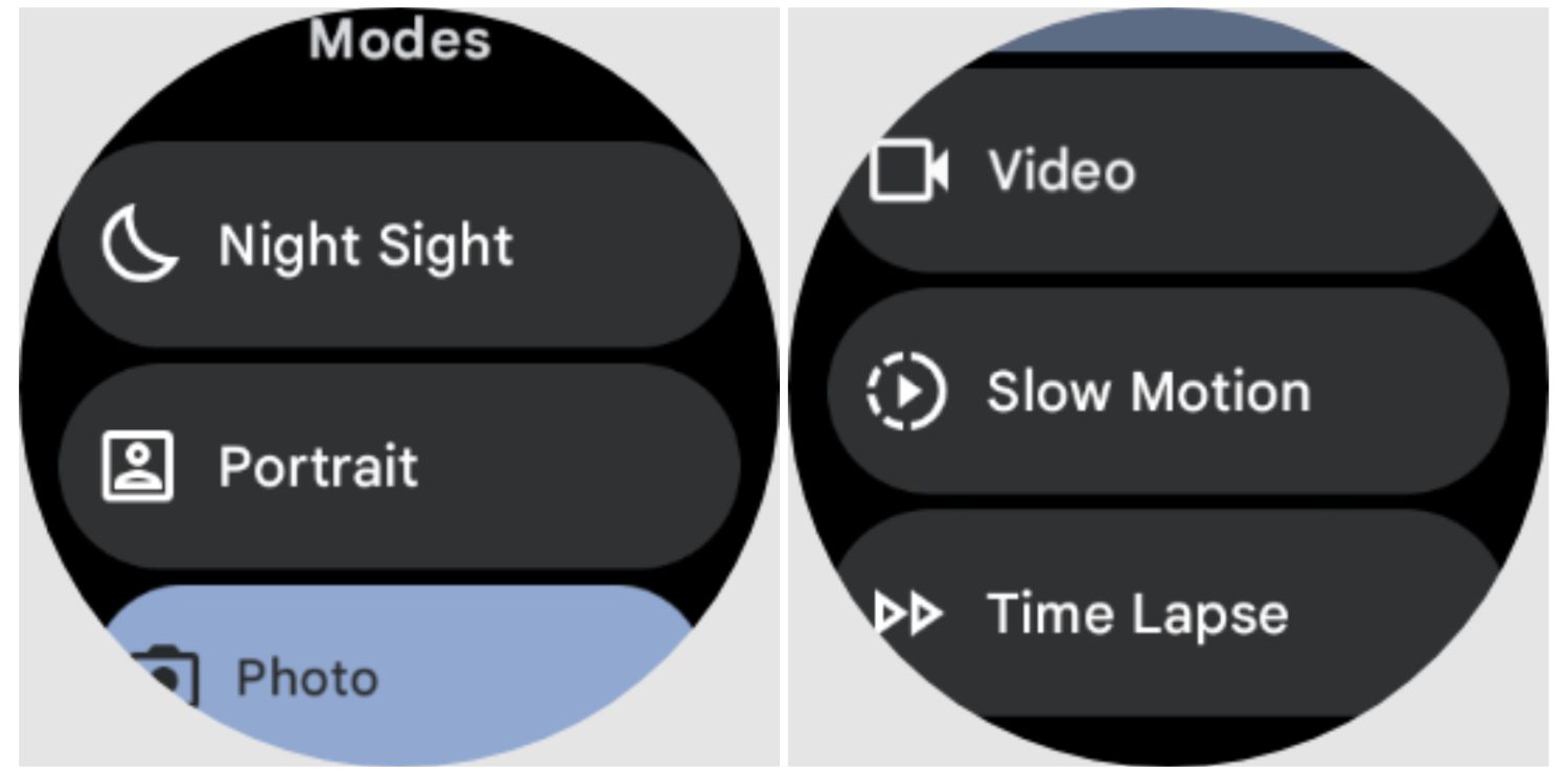 Mit der Pixel Kamera-App für Wear OS erhalten die Nutzer eine Fernbedienung, mit der sich die Kamera-App auf dem angebundenen Smartphone steuern lässt. Diese bot neben dem Auslöser bisher die Zusatzfunktionen zum Wechsel der Kamera (Hauptkamera oder Frontkamera) sowie zum Aktivieren eines Timers. Beide Funktionen bleiben bestehen und erhalten nun Zuwachs durch einen neuen Menüpunkt, in dem der aktiv genutzte Kameramodus festgelegt werden kann.