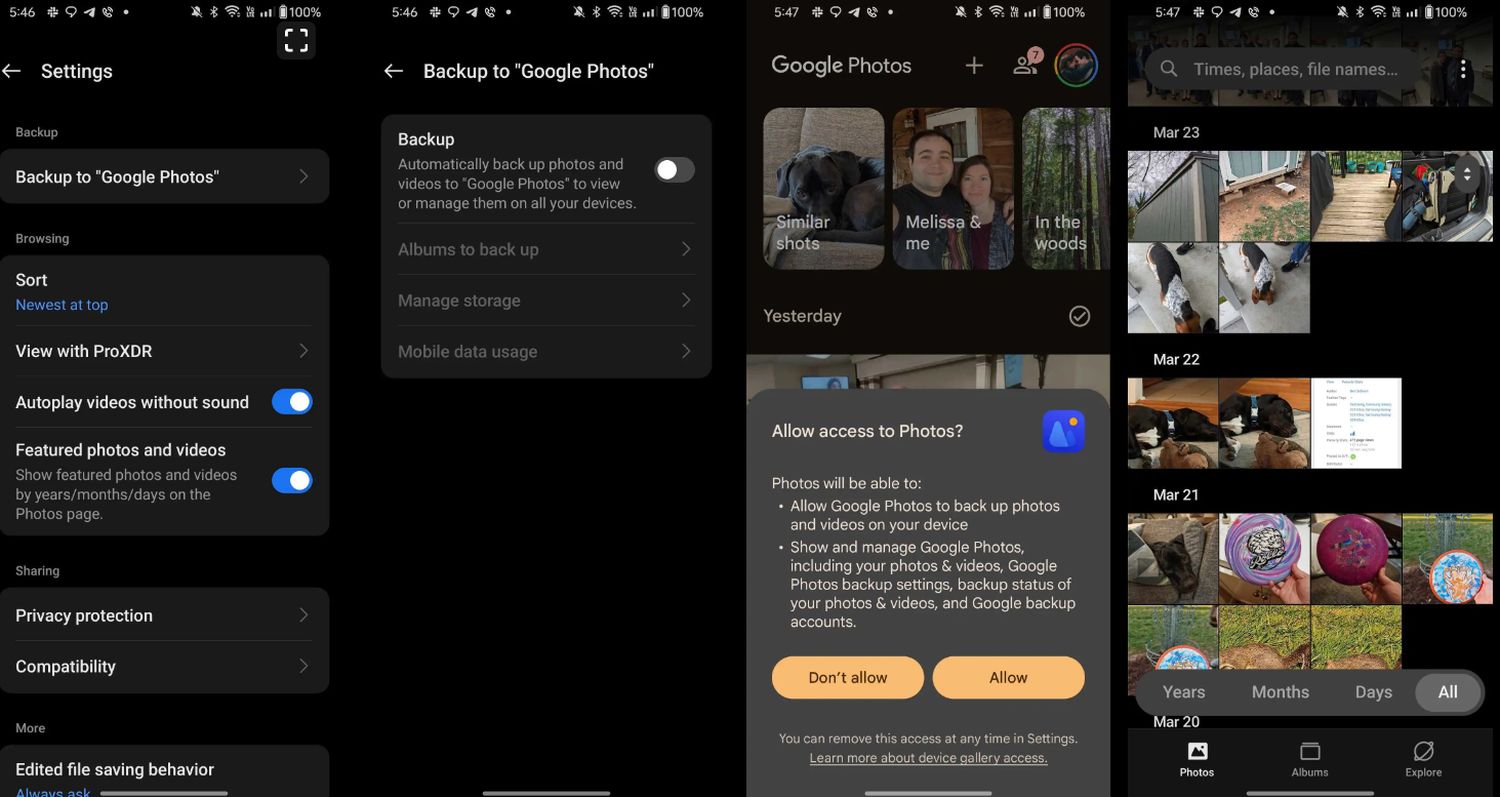 Auf obigen Screenshots ist die Integration zu sehen, die eine gemeinsame Anlaufstelle für die lokalen Medien und Cloudmedien ermöglicht. In einem Support-Dokument wird beschrieben, dass für diese Nutzung natürlich eine einmalige Autorisierung notwendig ist, die über die Einstellungen der jeweiligen Galerie-Apps vorgenommen werden muss. Es ist zu erwarten, dass andere Hersteller folgen werden – allen voran Samsung. Die Südkoreaner setzen bisher auf eine OneDrive-Integration zur Sicherung, aber durch die seit Jahren enge Zusammenarbeit mit Google dürfte es nur eine Frage der Zeit sein, bis auch an dieser Stelle zu Google gewechselt wird.
