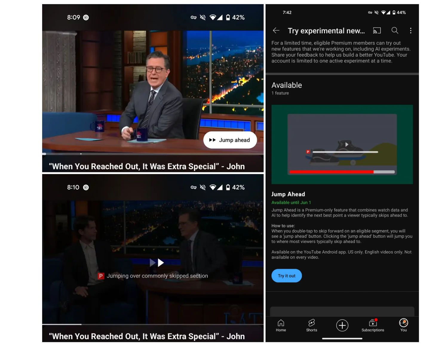 Mit „Jump Ahead“ erhalten die Nutzer die Möglichkeit, langatmige und „unwichtige“ Stellen in einem Video zu überspringen. Erkennen die KI-Algorithmen eine solche Stelle, wird ein Button eingeblendet, der das Überspringen anbietet. Dabei soll sowohl das Verhalten anderer Nutzer als auch eine KI-basierte Erkennung zum Einsatz kommen. Es wird die vermeintlich unwichtige Stelle übersprungen und zur nächsten gewechselt, bei der viele andere Nutzer wieder eingestiegen sind.