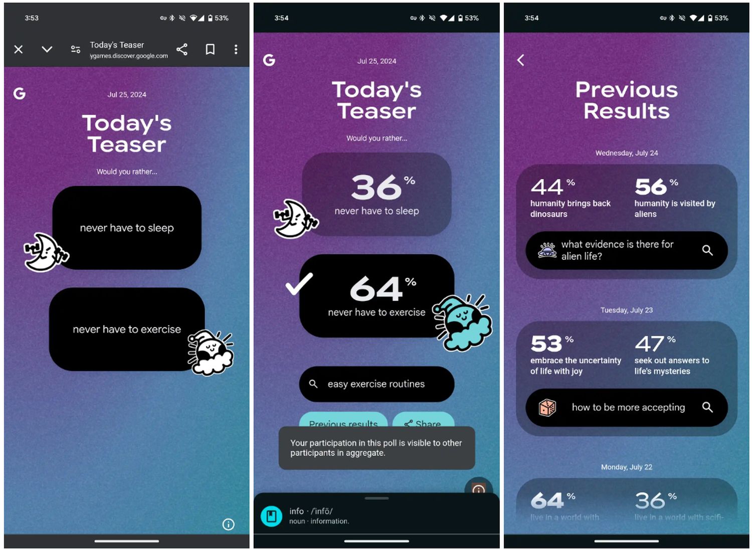Android: Google Discover erhält ein merkwürdiges Spiel – integriert belanglose Entweder-Oder-Fragen