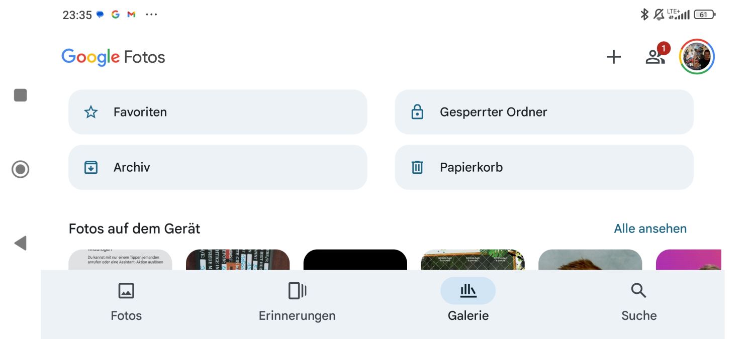 Wie ihr auf obigem Screenshot sehen könnt, ist der gesperrte Ordner jetzt direkt über den Galerie-Tab abrufbar. Öffnet dazu einfach den Galerie-Tab und wählt in der Auflistung am oberen Rand den Eintrag „gesperrter Ordner“. Das ergibt an dieser Stelle sicherlich Sinn und sorgt dafür, dass der Ordner sichtbarer und vielleicht von vielen Nutzern erstmals überhaupt entdeckt wird.