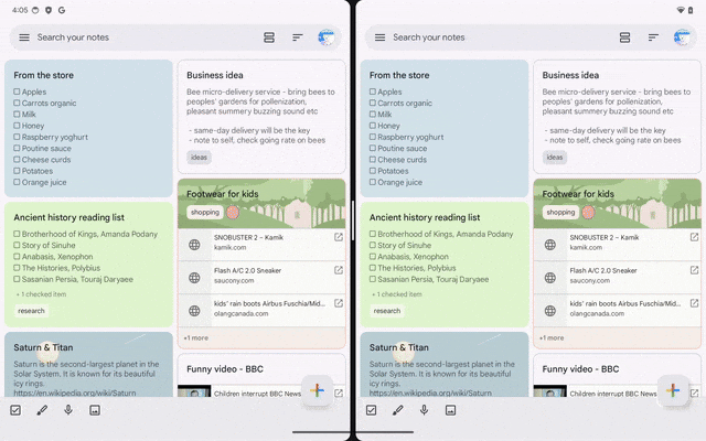 Das Update wird seit Ende vergangener Woche für alle Nutzer ausgerollt und sollte in diesen Tagen bei allen Android-Nutzern der App von Google Keep ankommen. Probiert das bei Bedarf einfach einmal aus, am Besten natürlich auf einem Foldable oder Tablet.