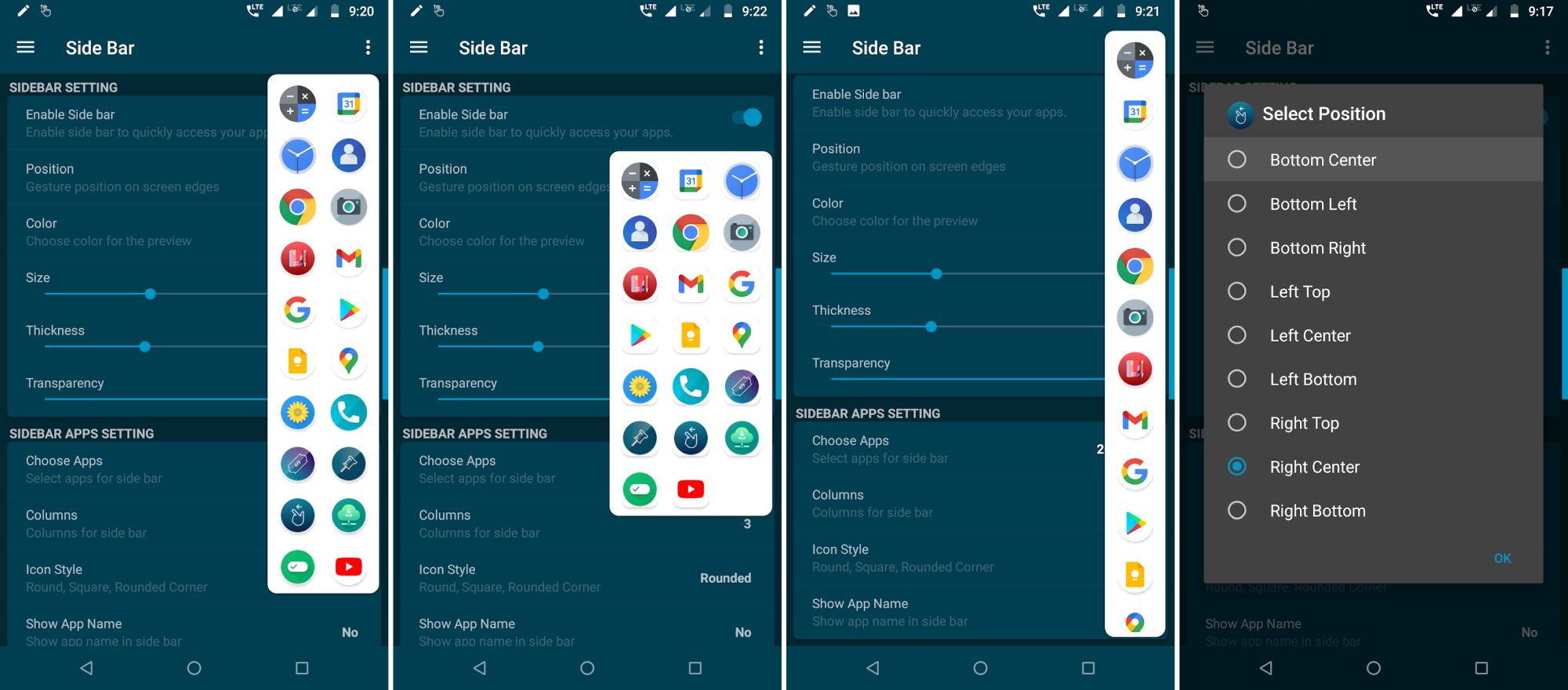 Mit „Edge Side Bar“ könnt ihr eine schwebende Leiste einrichten, die einen schnellen Wechsel zu einer anderen App ermöglicht. Die Leiste ist frei anpassbar und kann mit beliebigen App-Verknüpfungen versehen werden. Diese fungiert als echte Startleiste und kann nicht nur in puncto App-Auswahl sondern auch der Darstellung angepasst werden. Ihr könnt die Spaltenbreite anpassen, die Höhe anpassen, der Leiste eine andere Position zuweisen und einiges mehr.